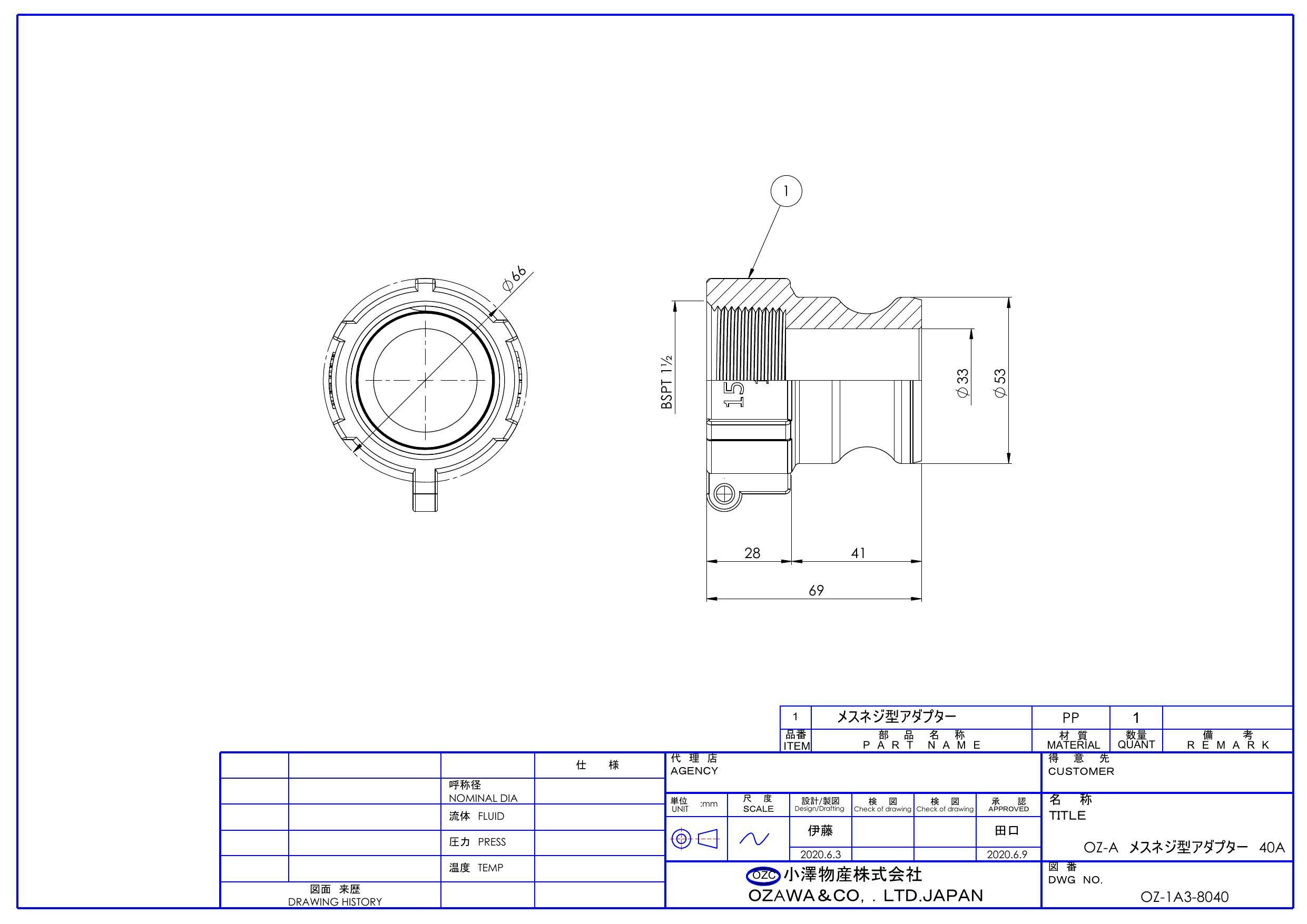 小澤物産 OZ-A-PP 40A OZ-Aポリプロピレン 雌ネジ型アダプター 40A 配管部材 クイックカップリング 00000236218【別送品】
