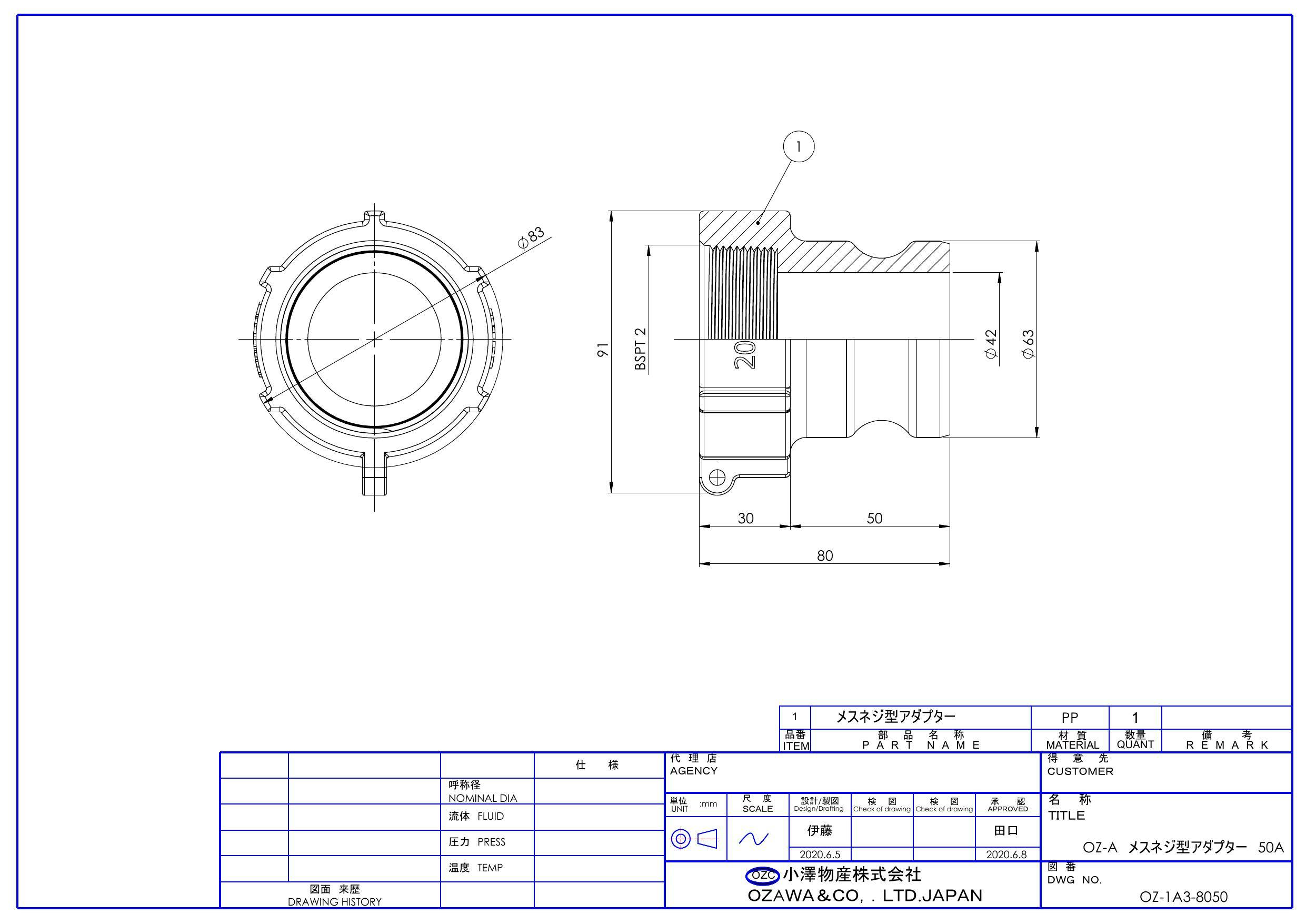 小澤物産 OZ-A-PP 50A OZ-Aポリプロピレン 雌ネジ型アダプター 50A 配管部材 クイックカップリング 00000236219【別送品】