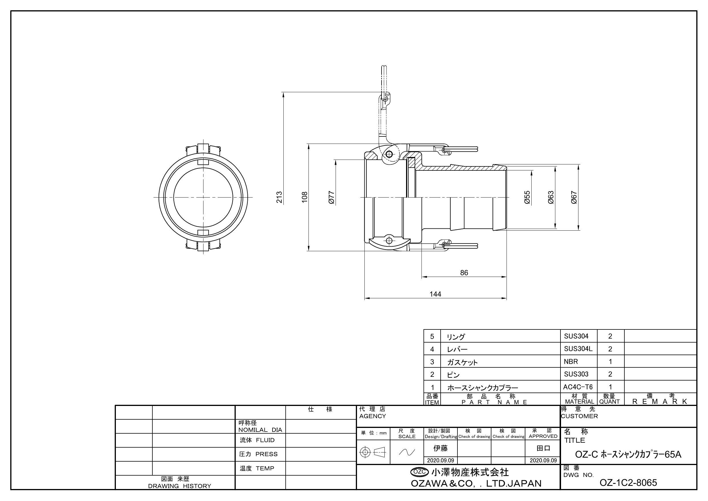 小澤物産 OZ-C-AL 65A OZ-C アルミ ホースシャンク型カプラー 65A 配管部材 クイックカップリング 00000236336【別送品】