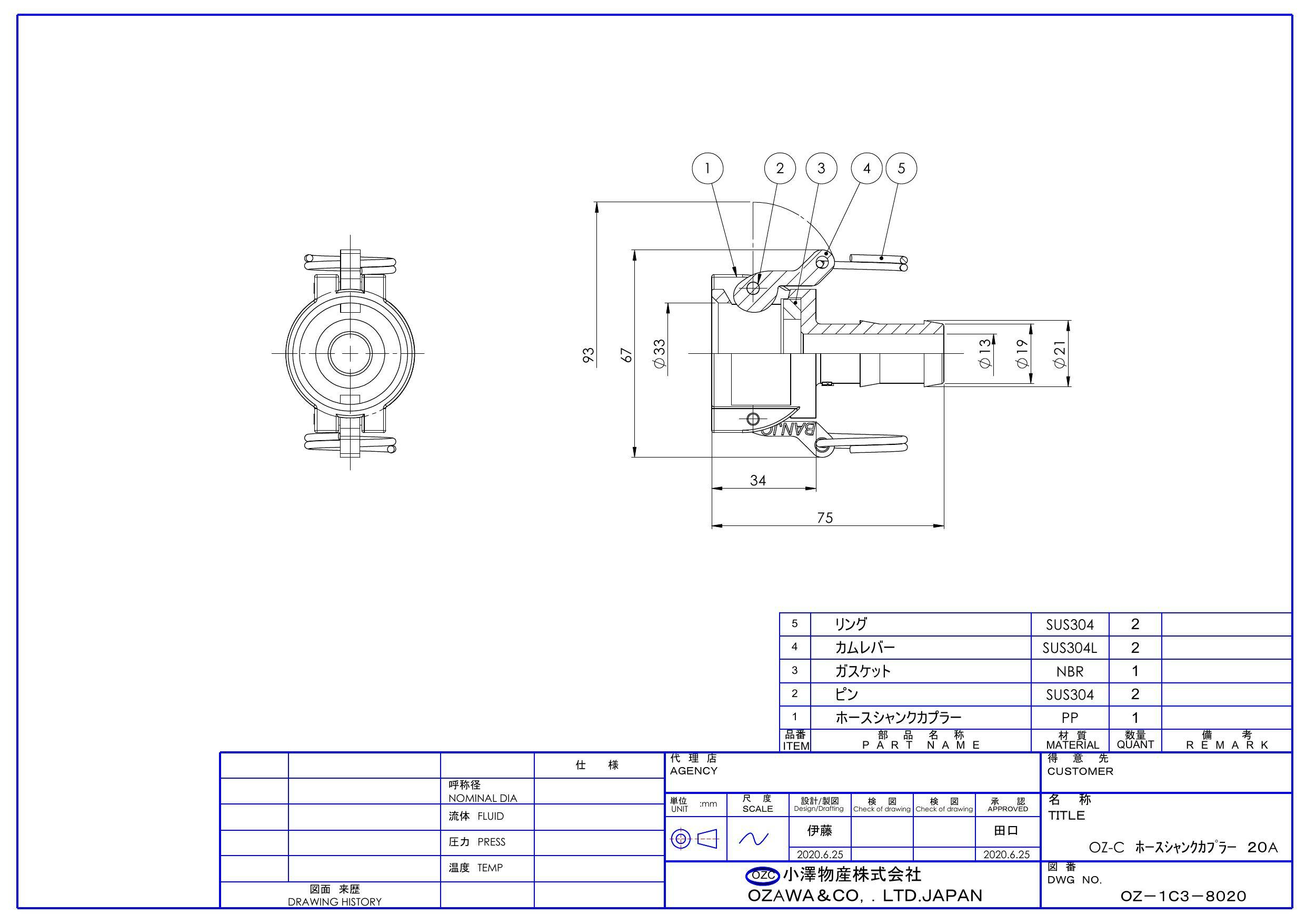 小澤物産 OZ-C-PP 20A OZ-Cポリプロピレン ホースシャンク型カプラー 20A 配管部材 クイックカップリング 00000236350【別送品】