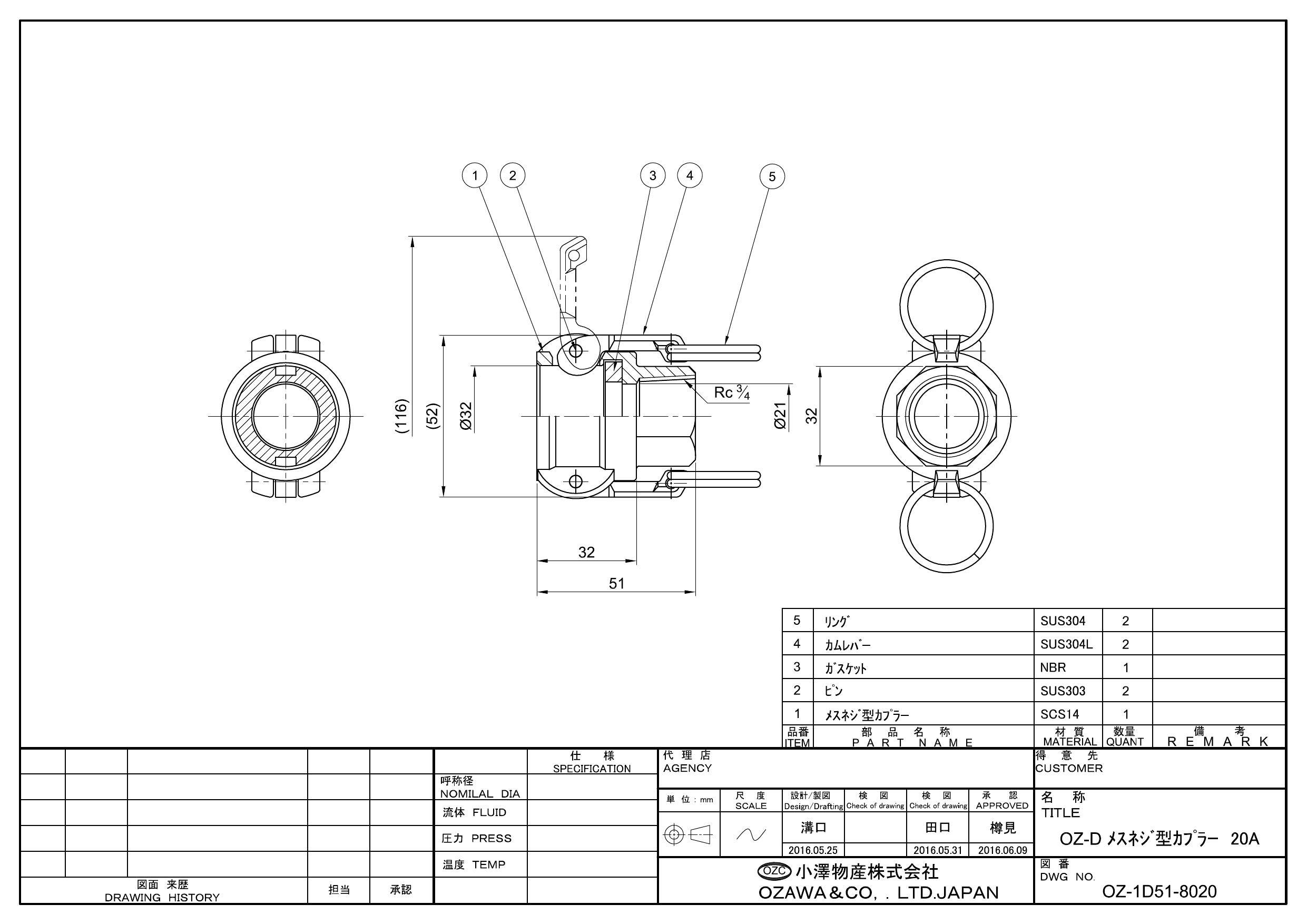小澤物産 OZ-D-SUS 20A OZ-D SUS 雌ネジ型カプラー 20A 配管部材 クイックカップリング 00000236443【別送品】