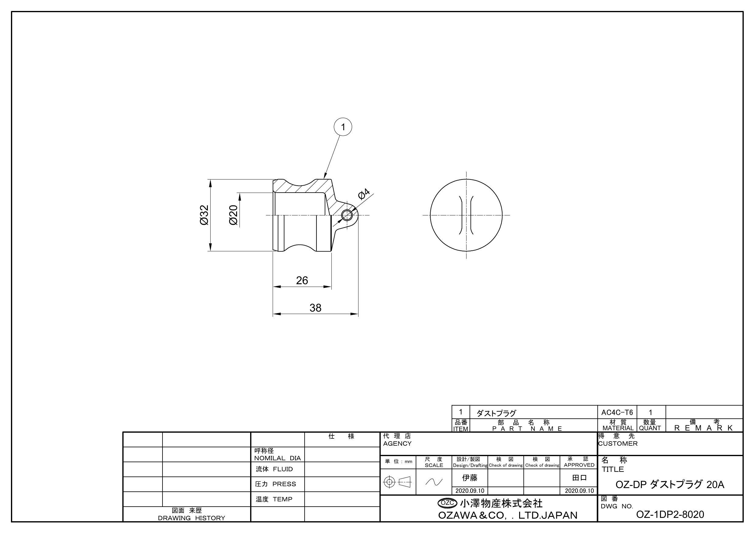 小澤物産 OZ-DP-AL 20A OZ-DP アルミ ダストプラグ 20A 配管部材 クイックカップリング 00000236580【別送品】