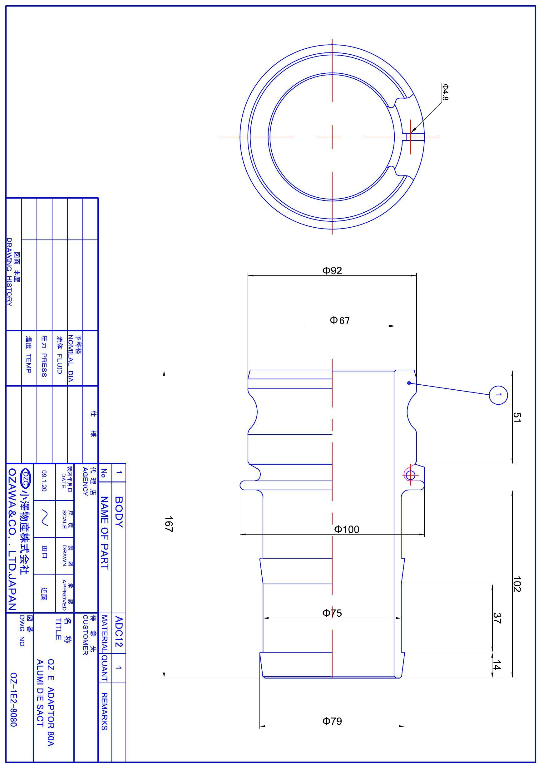 小澤物産 OZ-E-AL 80A OZ-E アルミ ホースシャンク型アダプター 80A 配管部材 クイックカップリング 00000236667【別送品】