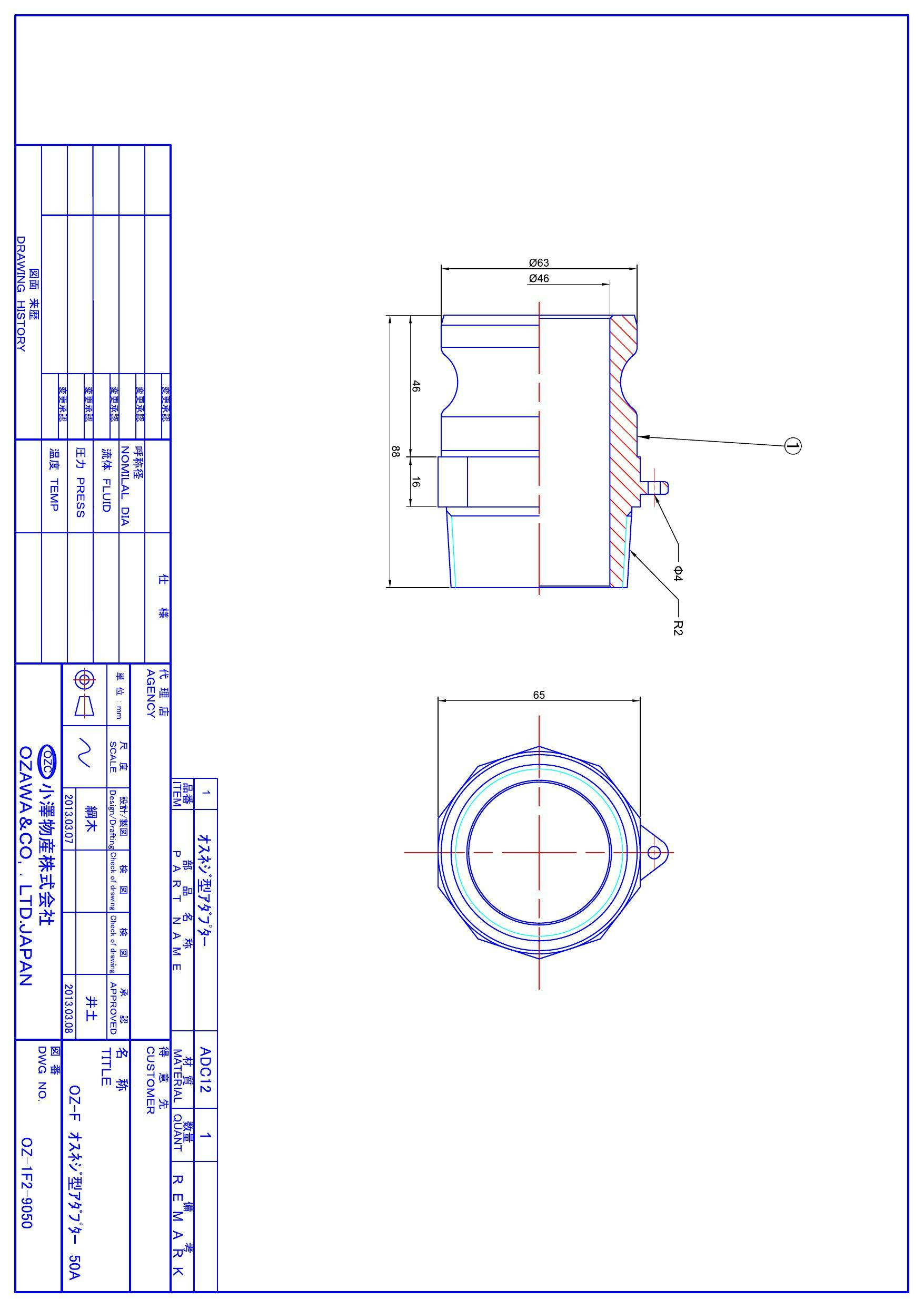 小澤物産 OZ-F-AL 50A OZ-F アルミ 雄ネジ型アダプター 50A 配管部材 クイックカップリング 00000236777【別送品】