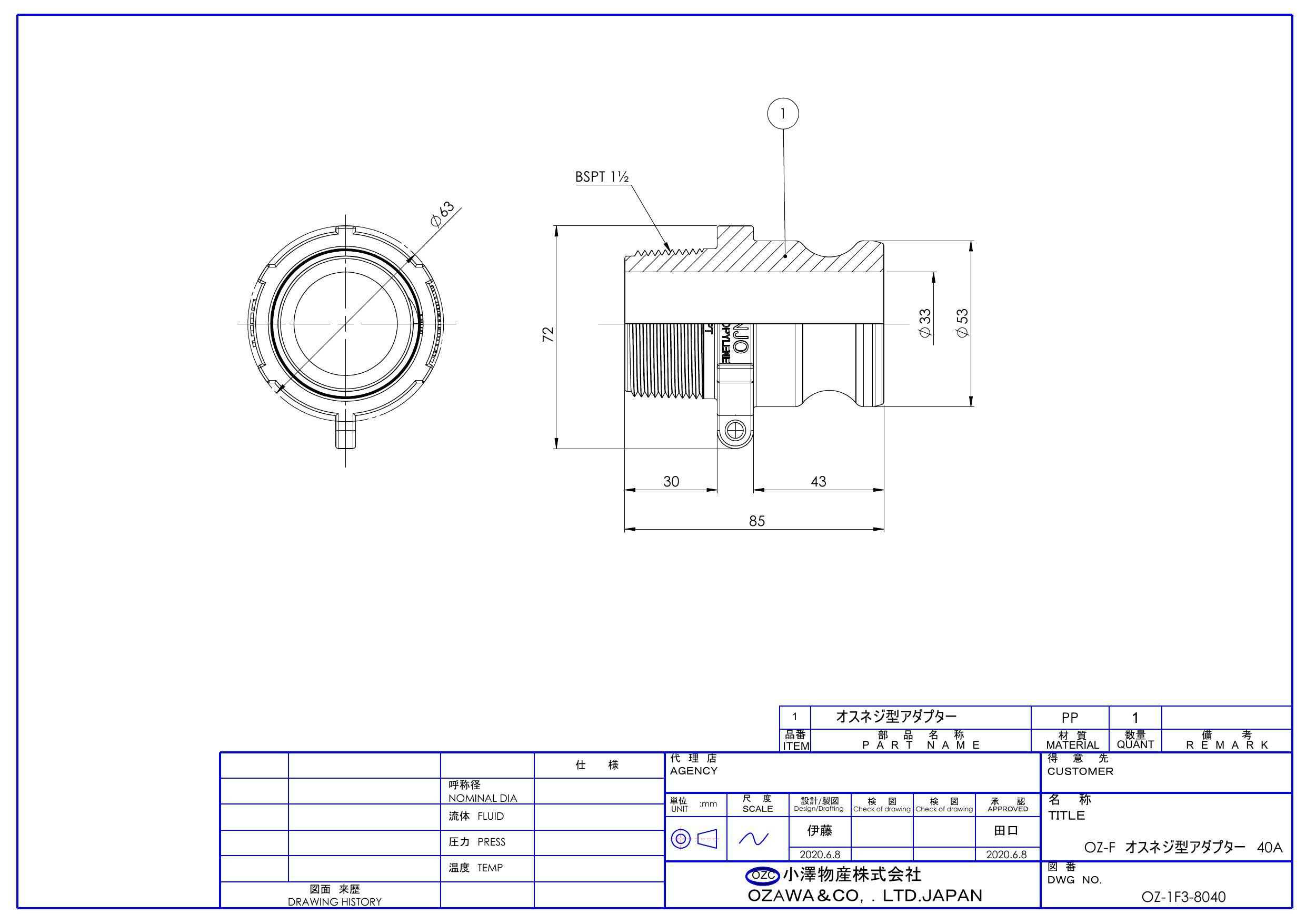 小澤物産 OZ-F-PP 40A OZ-Fポリプロピレン 雄ネジ型アダプター 40A 配管部材 クイックカップリング 00000236795【別送品】