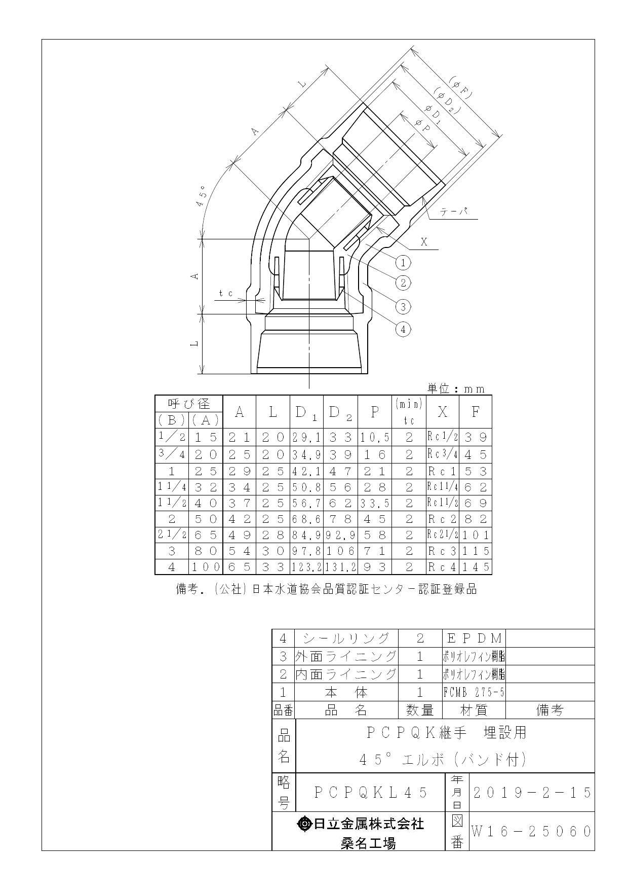 桑名金属工業 PCPQK-45°L 埋設配管用 エルボ 32A 配管部材 PCPQK継手 00000238287【別送品】