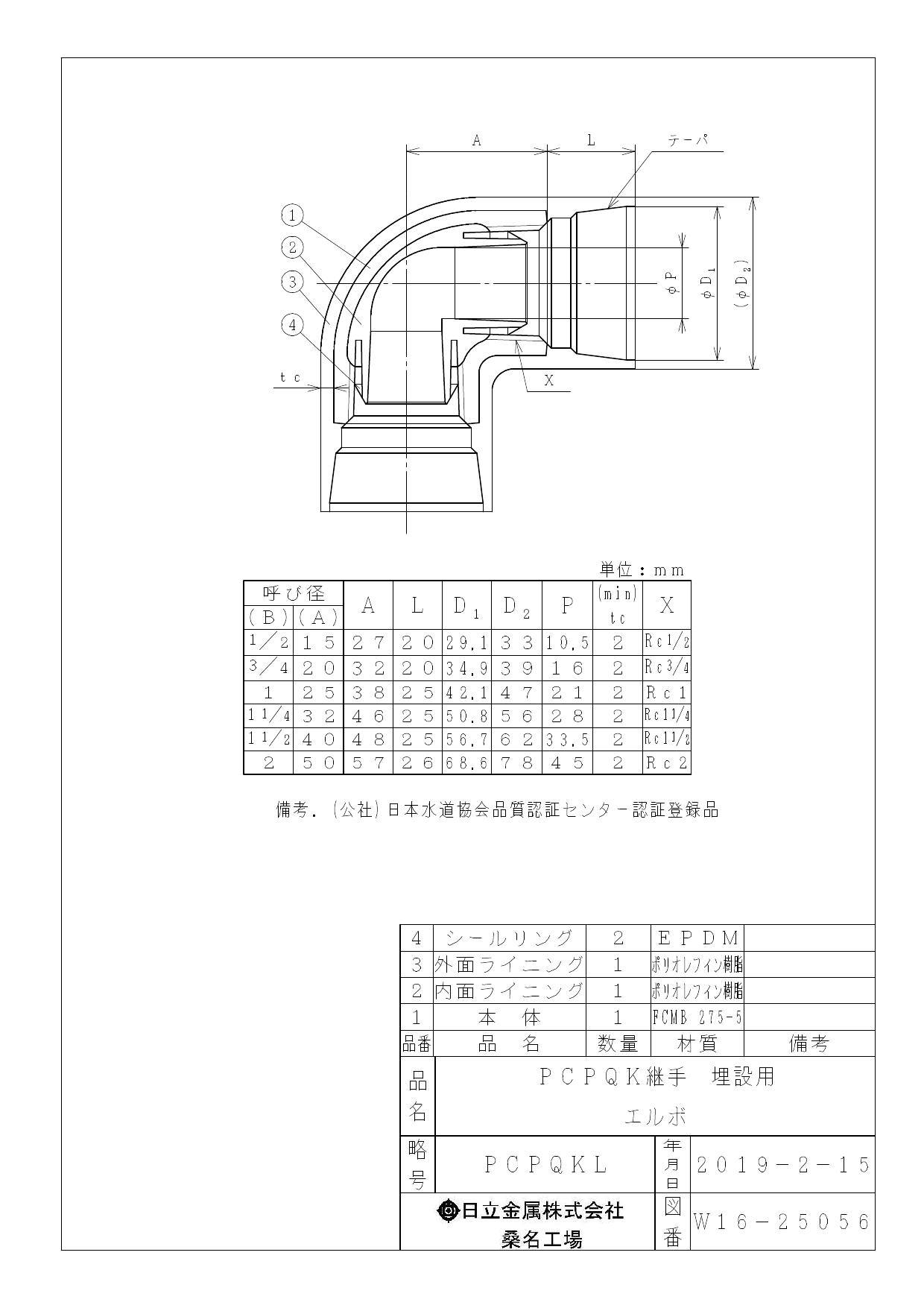 桑名金属工業 PCPQK-L 埋設配管用エルボ 20A 配管部材 PCPQK継手 00000238320【別送品】