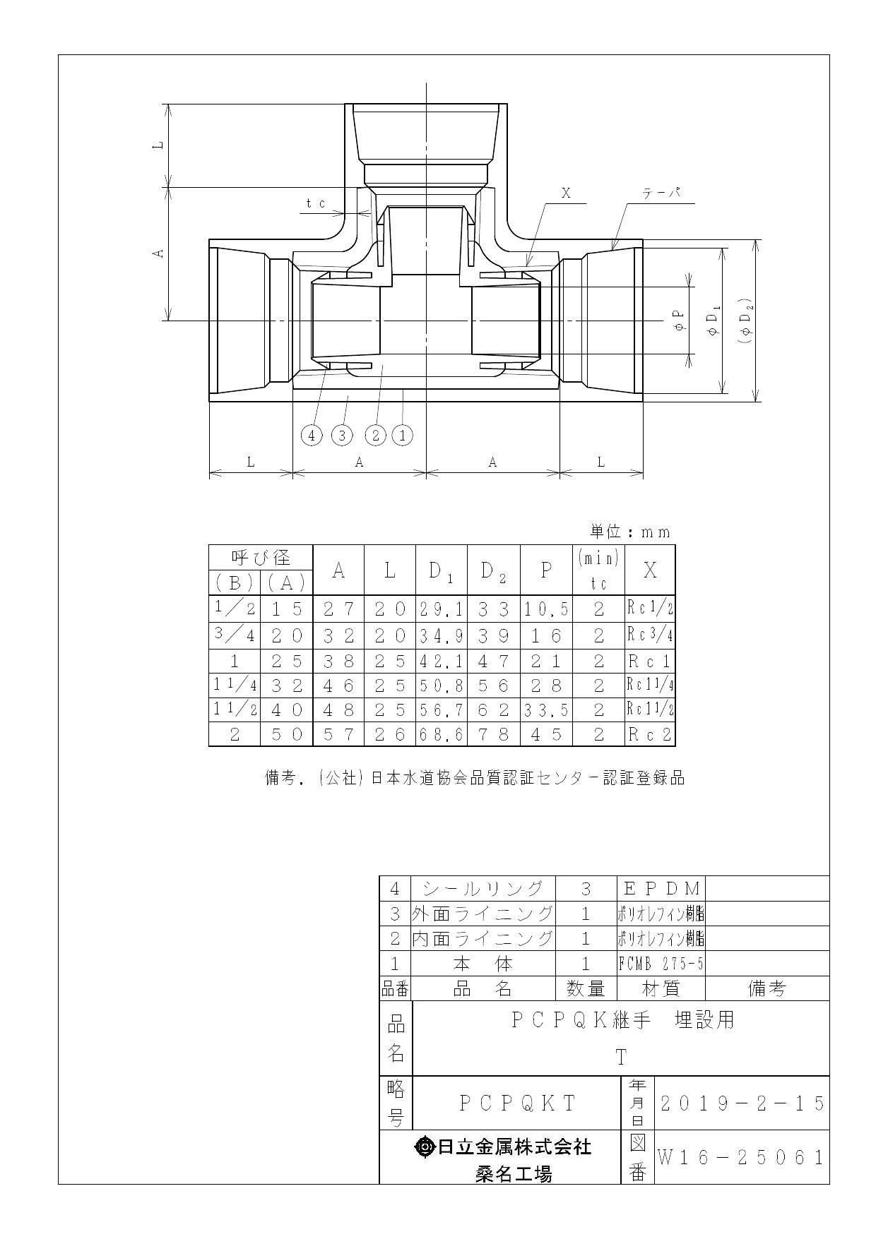 桑名金属工業 PCPQK-T 埋設配管用チーズ 20A 配管部材 PCPQK継手 00000238422【別送品】