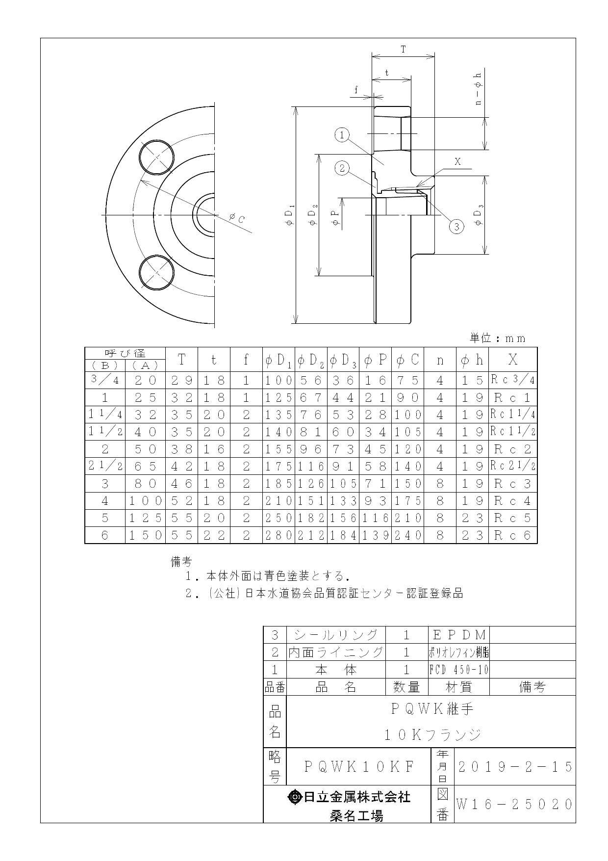 桑名金属工業 PQWK 10K フランジ 65A 配管部材 PQWK継手 00000241790【別送品】