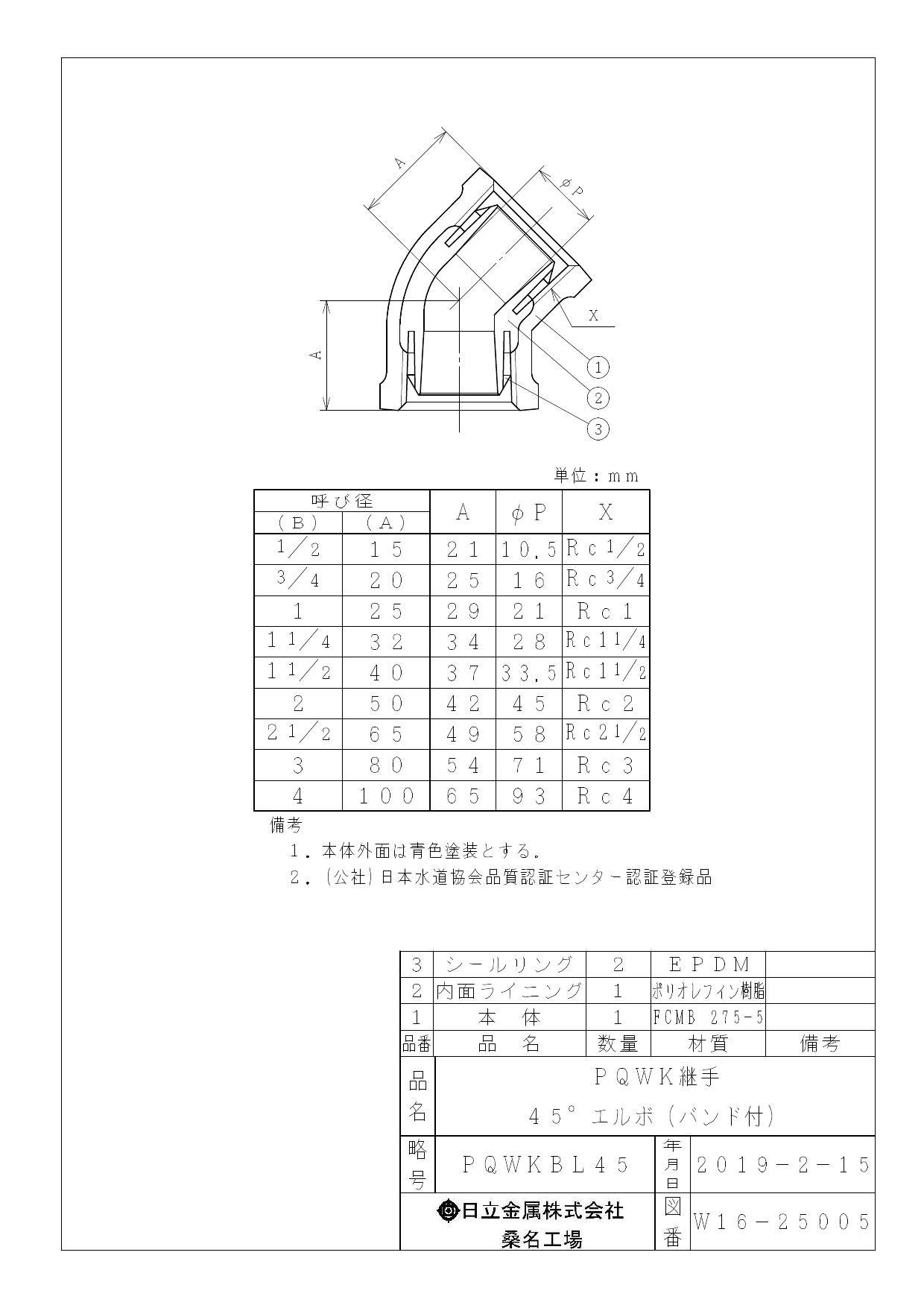 桑名金属工業 PQWK 45°エルボ 32A 配管部材 PQWK継手 00000241796【別送品】