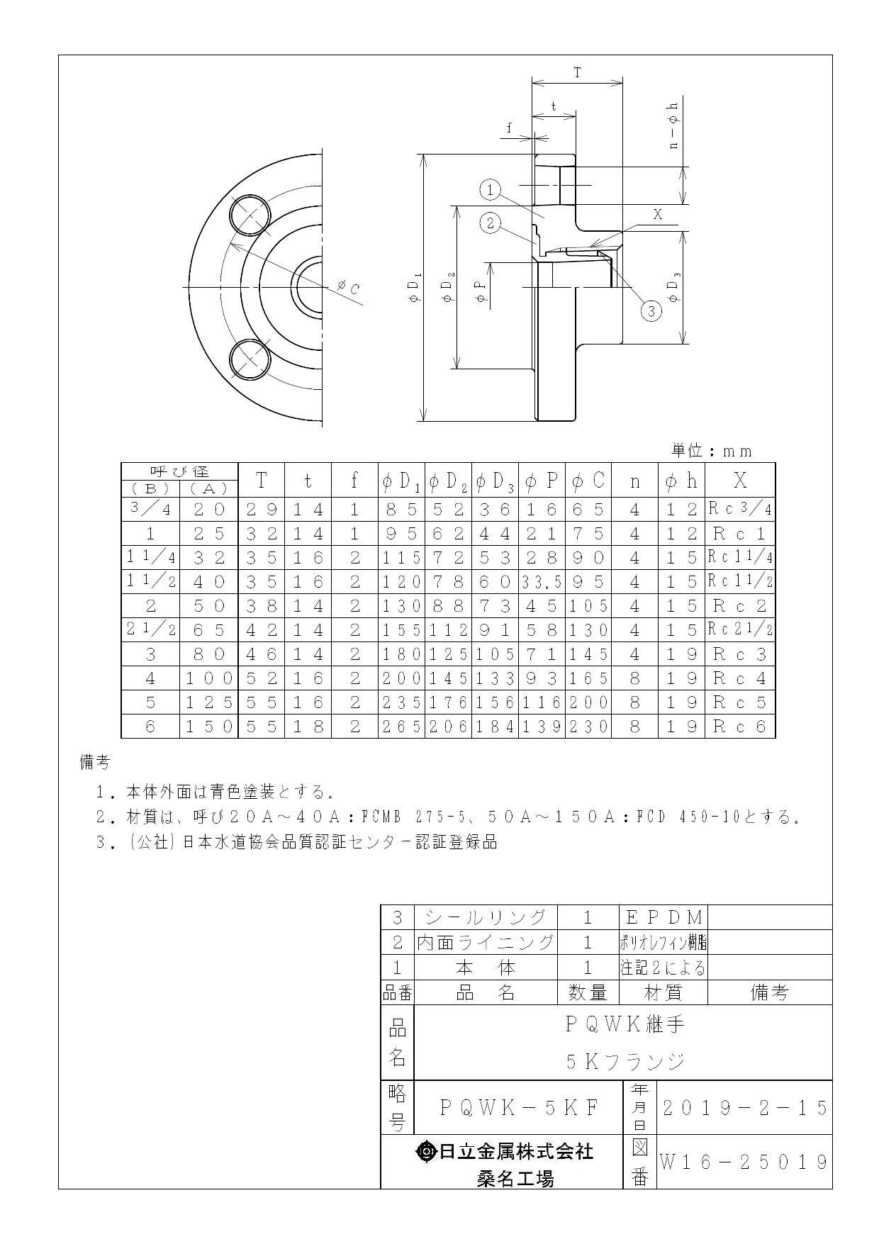 桑名金属工業 PQWK 5K フランジ 65A 配管部材 PQWK継手 00000241809【別送品】