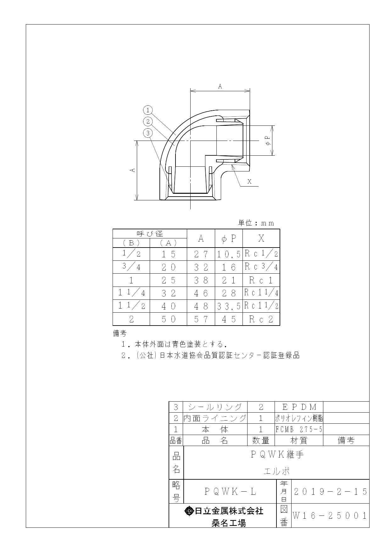 桑名金属工業 PQWK エルボ 15A 配管部材 PQWK継手 00000241899【別送品】