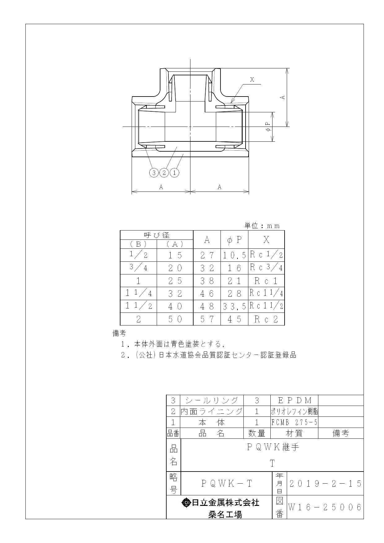 桑名金属工業 PQWK チーズ 15A 配管部材 PQWK継手 00000242034【別送品】