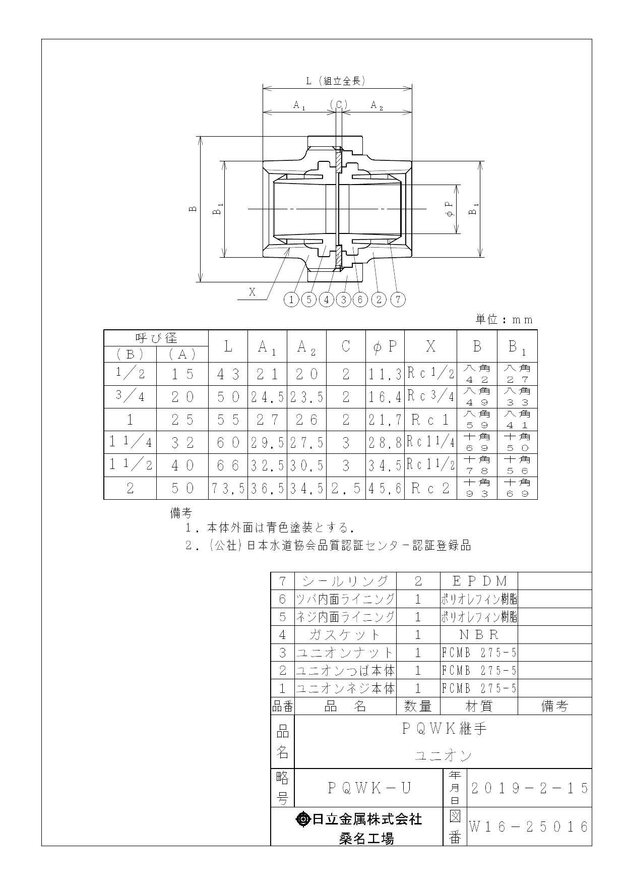 桑名金属工業 PQWK ユニオン 32A 配管部材 PQWK継手 00000242046【別送品】