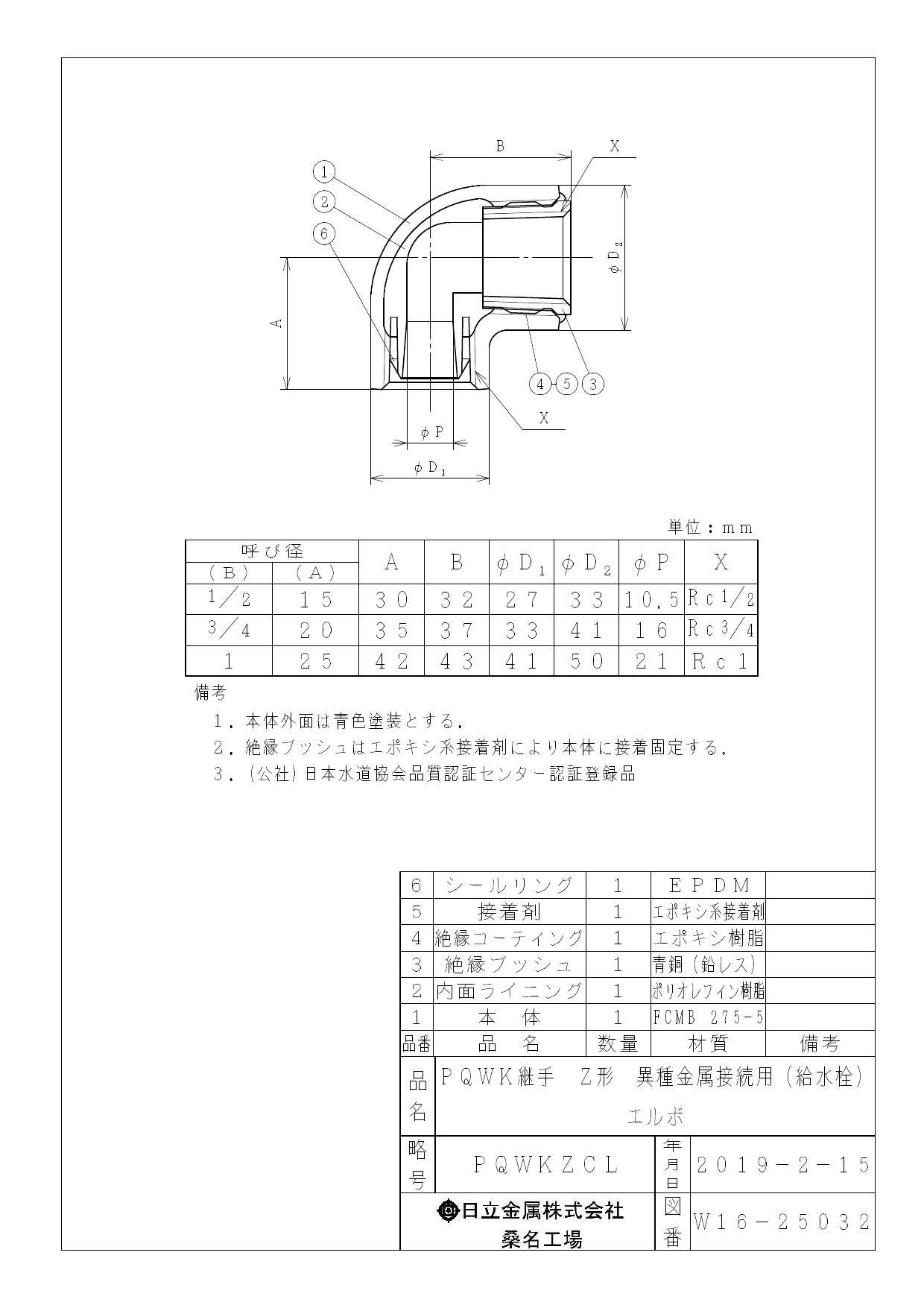 桑名金属工業 PQWK-ZCL 給水栓エルボ 防食ねじ付異種金属接続用・ZC形 20A 配管部材 PQWK継手 00000242065【別送品】