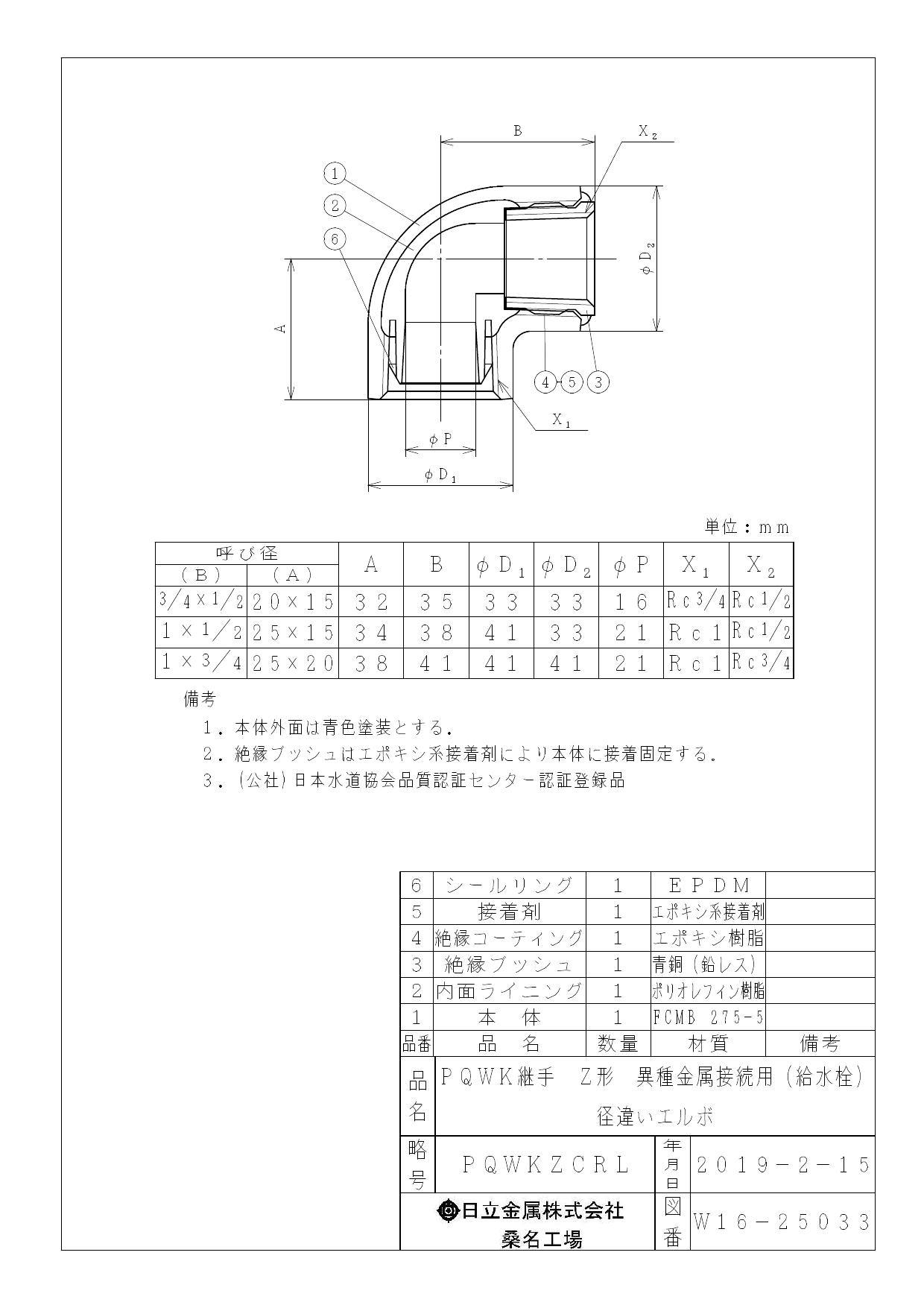 桑名金属工業 PQWK-ZCRL 給水栓径違いエルボ 防食ねじ付異種金属接続用ZC形 20AX15A 配管部材 PQWK継手 00000242067【別送品】