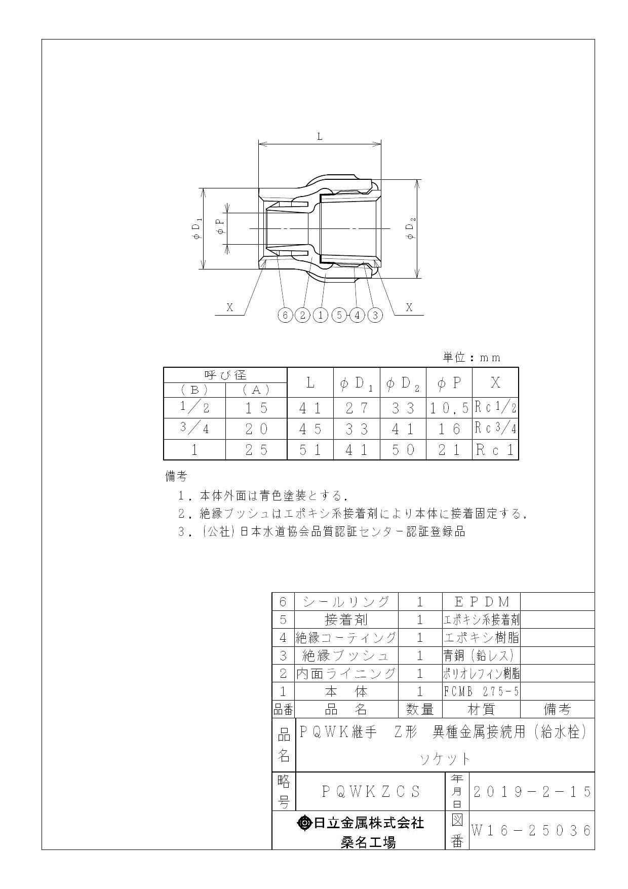桑名金属工業 PQWK-ZCS 給水栓ソケット 防食ねじ付異種金属接続用・ZC形 25A 配管部材 PQWK継手 00000242077【別送品】
