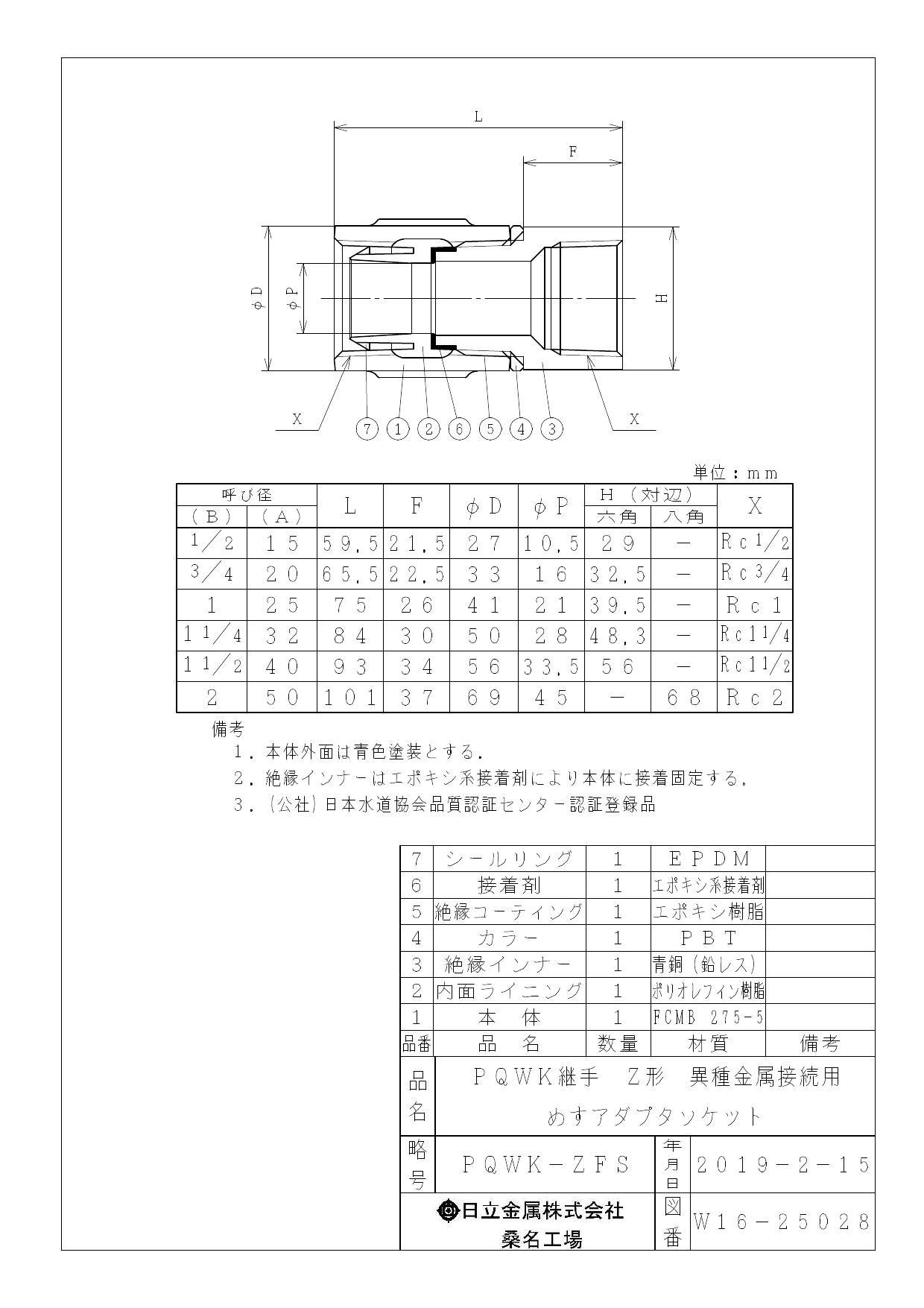 桑名金属工業 PQWK-ZFS メスアダプタ ソケット 25A 配管部材 PQWK継手 00000242094【別送品】