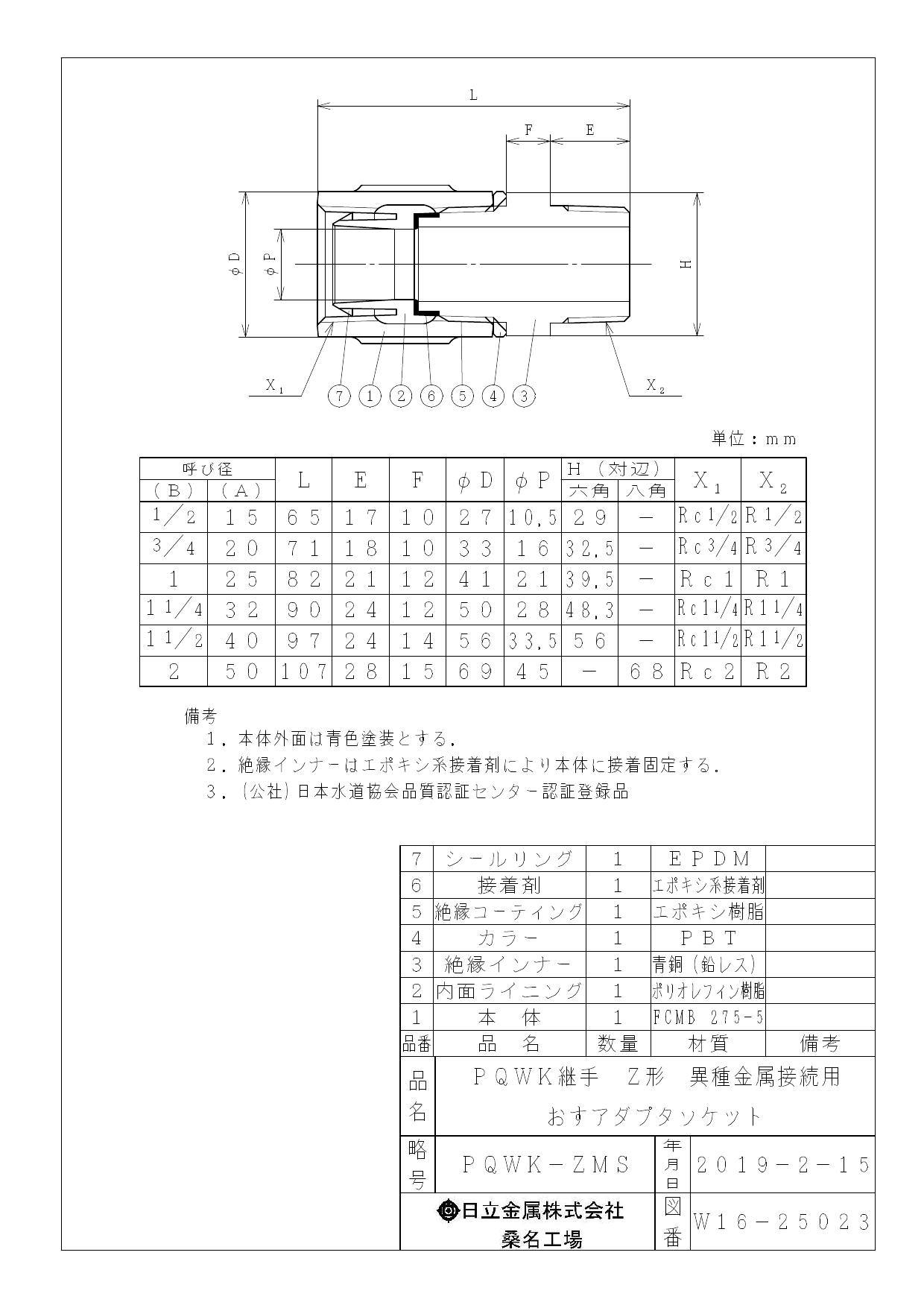 桑名金属工業 PQWK-ZMS オスアダプタ ソケット 25A 配管部材 PQWK継手 00000242109【別送品】