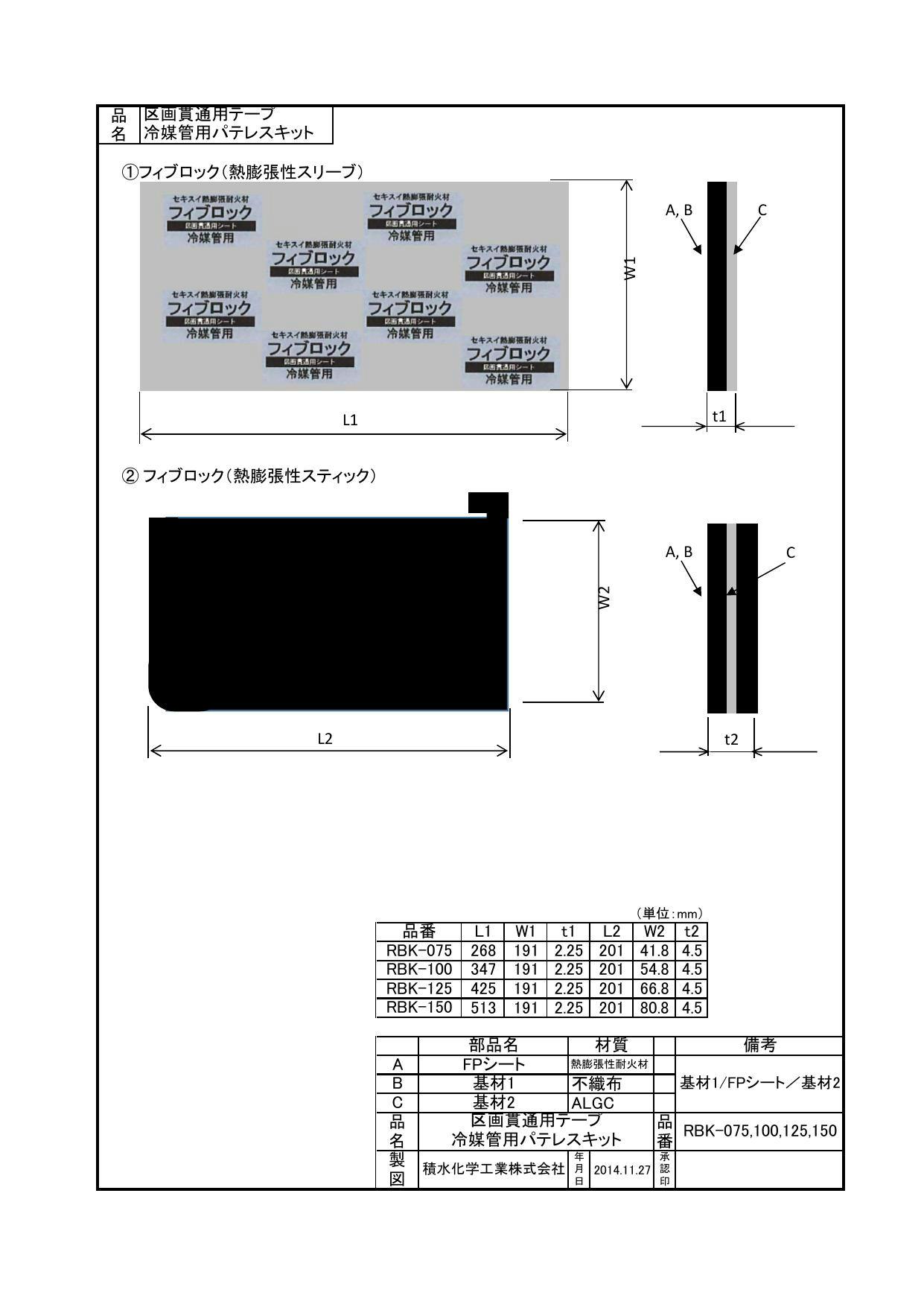 積水化学工業 セキスイ RBK-150 フィブロック冷媒管用パテレスキット150φ配管部材 フィブロック 冷媒管用【壁床】 00000246517【別送品】
