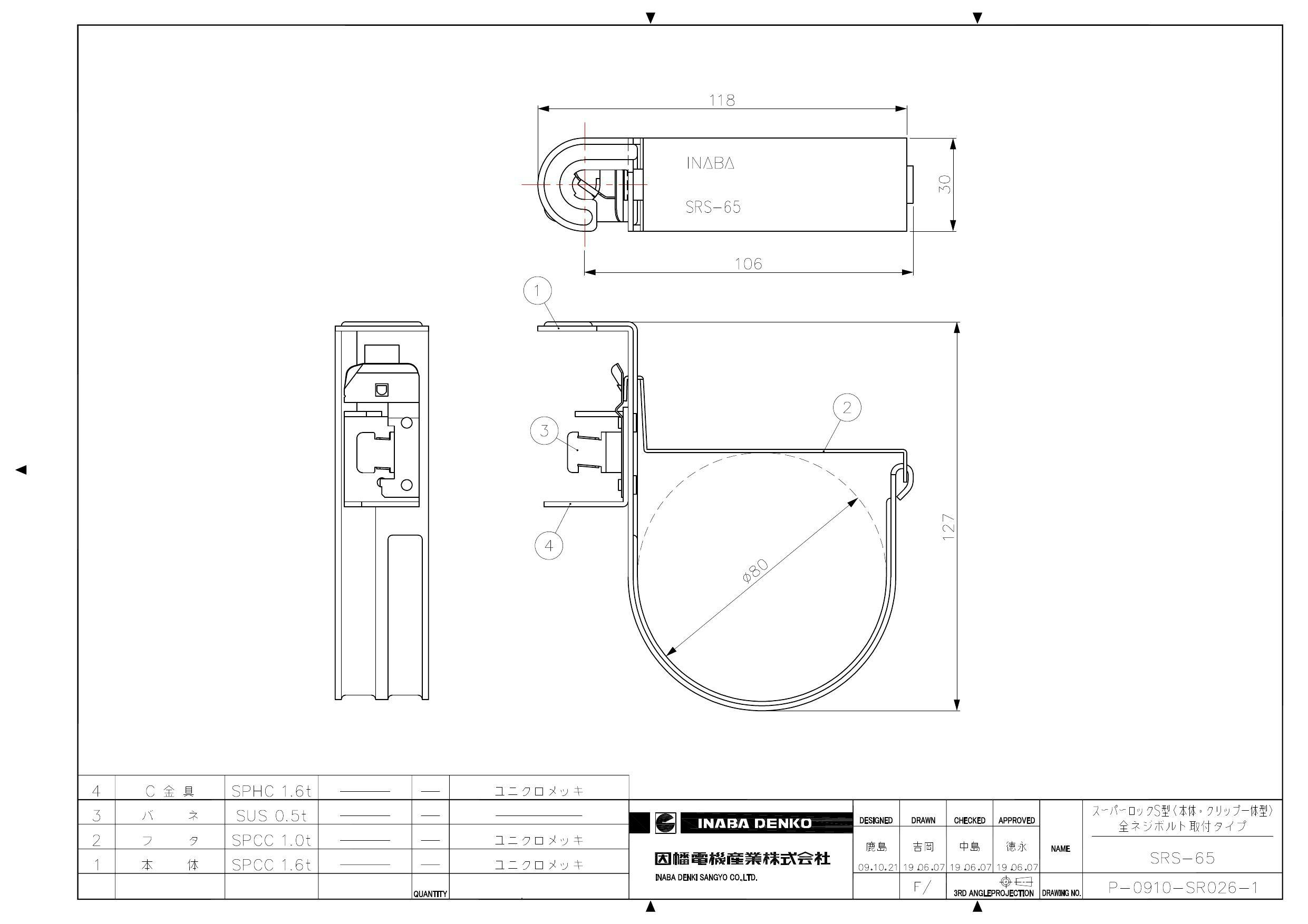 因幡電機産業 SRS-65 スーパロックS型【被覆銅管:10mm50.80 20mm38.10】 空調部材 支持具・保持具・結束具 00000287640【別送品】