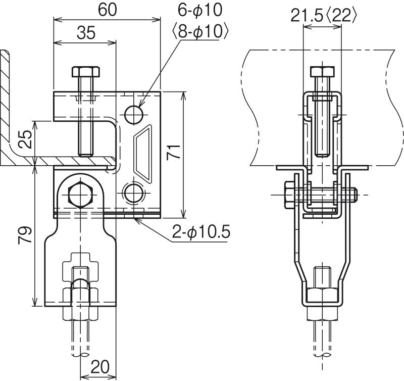 ●引っ張りに対して確実な支持ができる様に、くぼみ先構造のボルトを使用しています。●ドブメッキ ●吊りボルトにナットを付けたまま、下部金具にセットできます。