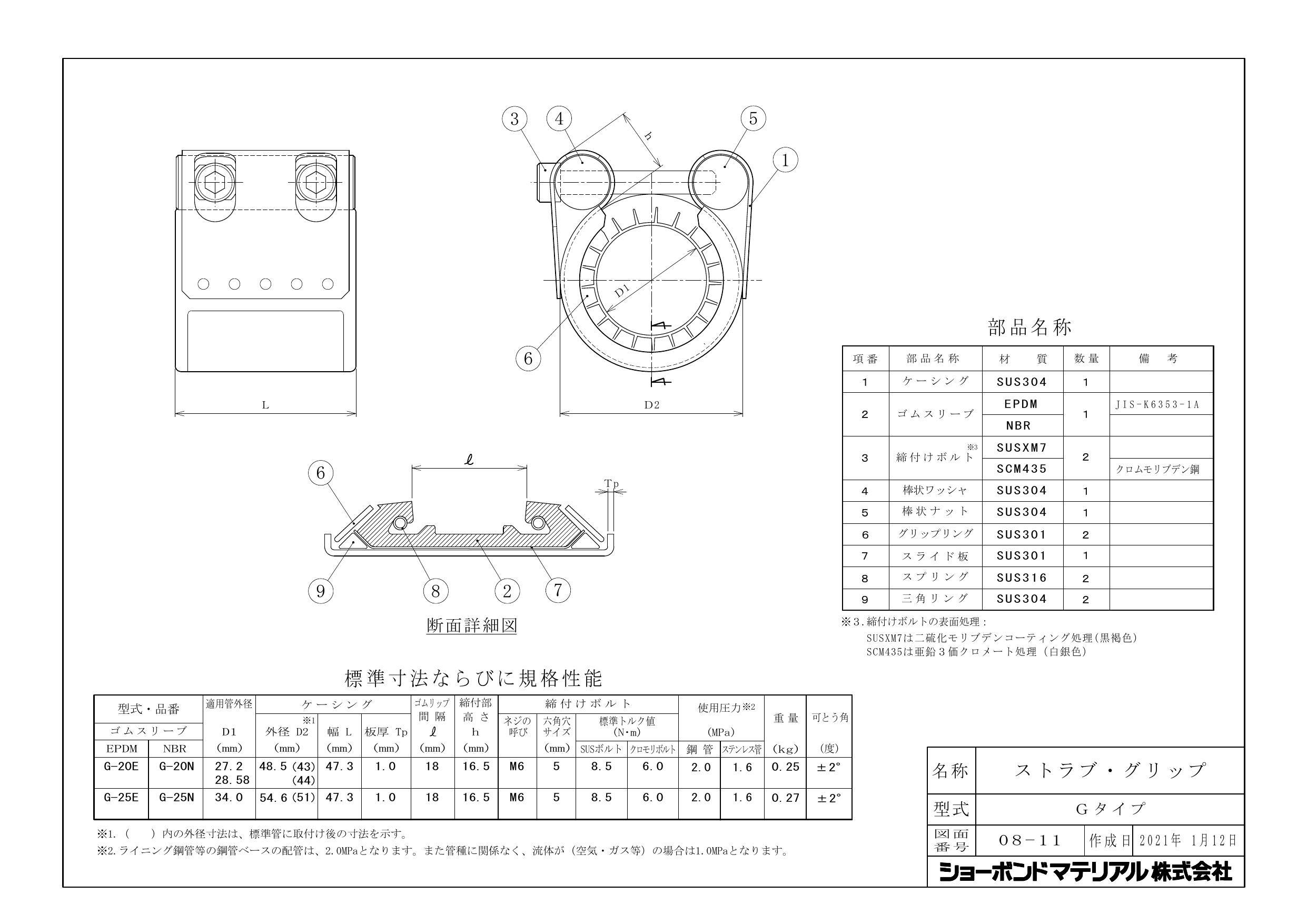 ショーボンドマテリアル G-20ESS ストラブ・グリップ Gタイプ【SUSボルト・EPDM】 配管部材 カップリング(Gタイプ) 00000369866【別送品】