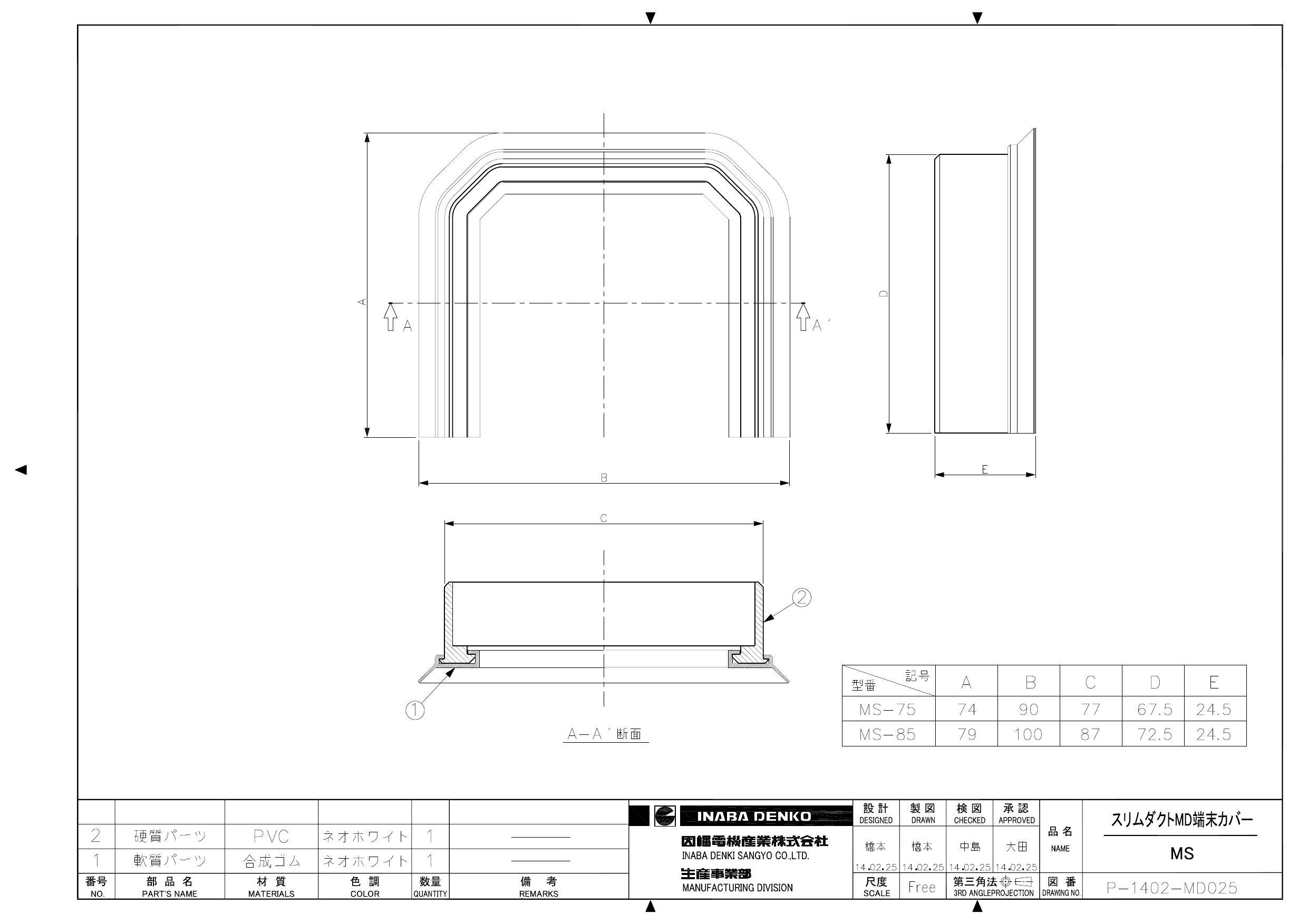 因幡電機産業 MS-85 スリムダクトMD 端末ゴムカバー 空調部材 配管化粧カバー MD 00000377792【別送品】