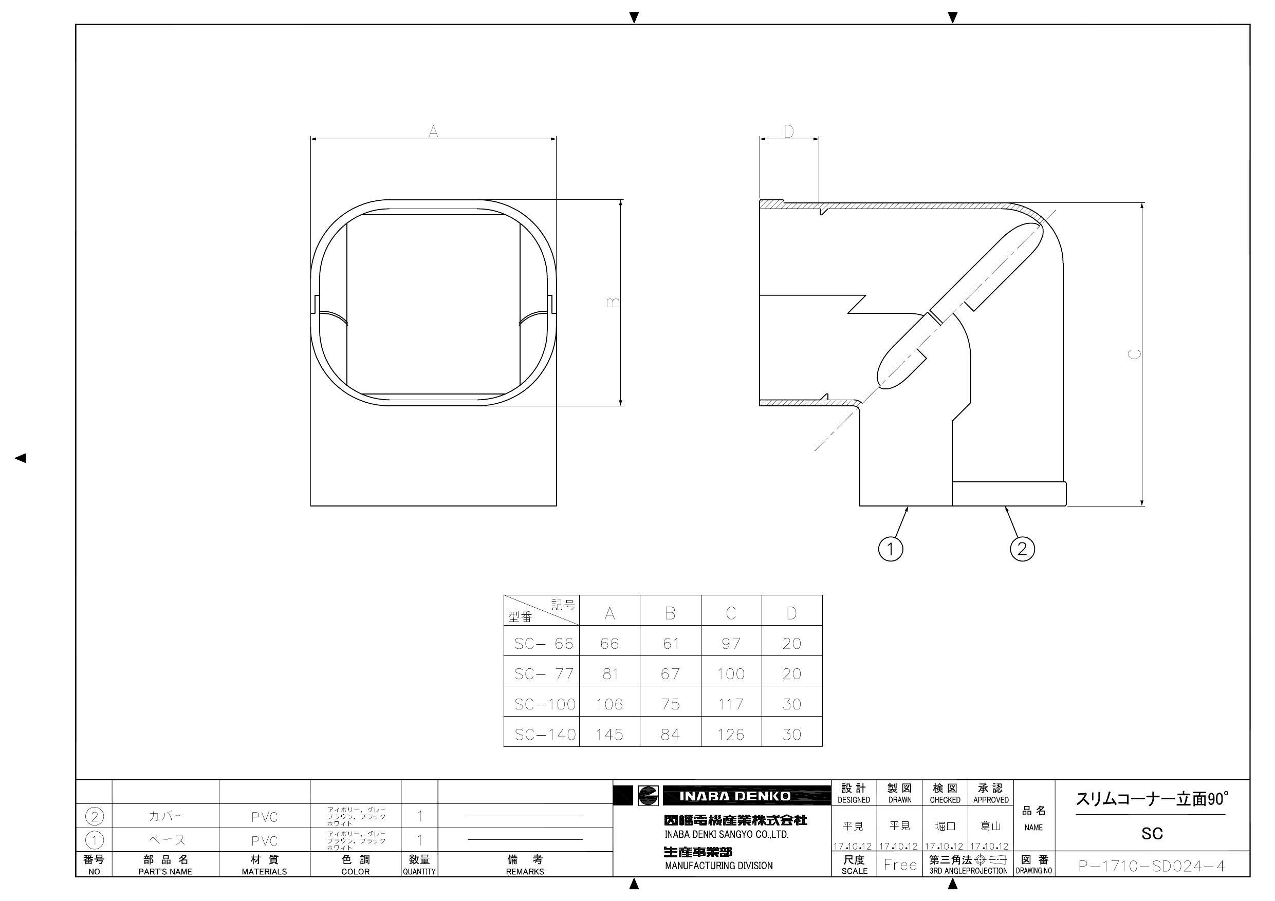 因幡電機産業 SC-100-I スリムコーナー立面90° アイボリー 00000428461【別送品】