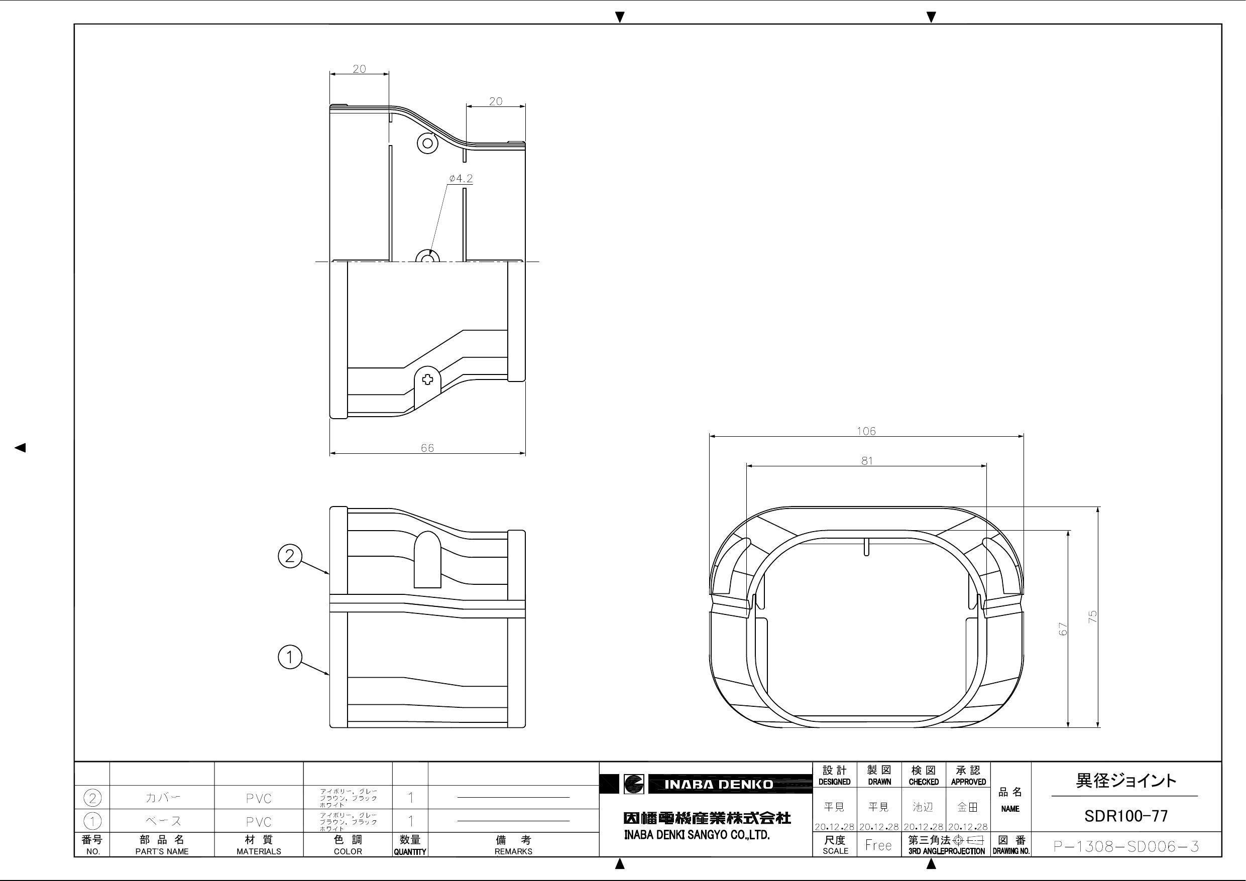 因幡電機産業 SDR-100-77-I 異径ジョイント アイボリー 空調部材 配管化粧カバー SD 00000428534【別送品】