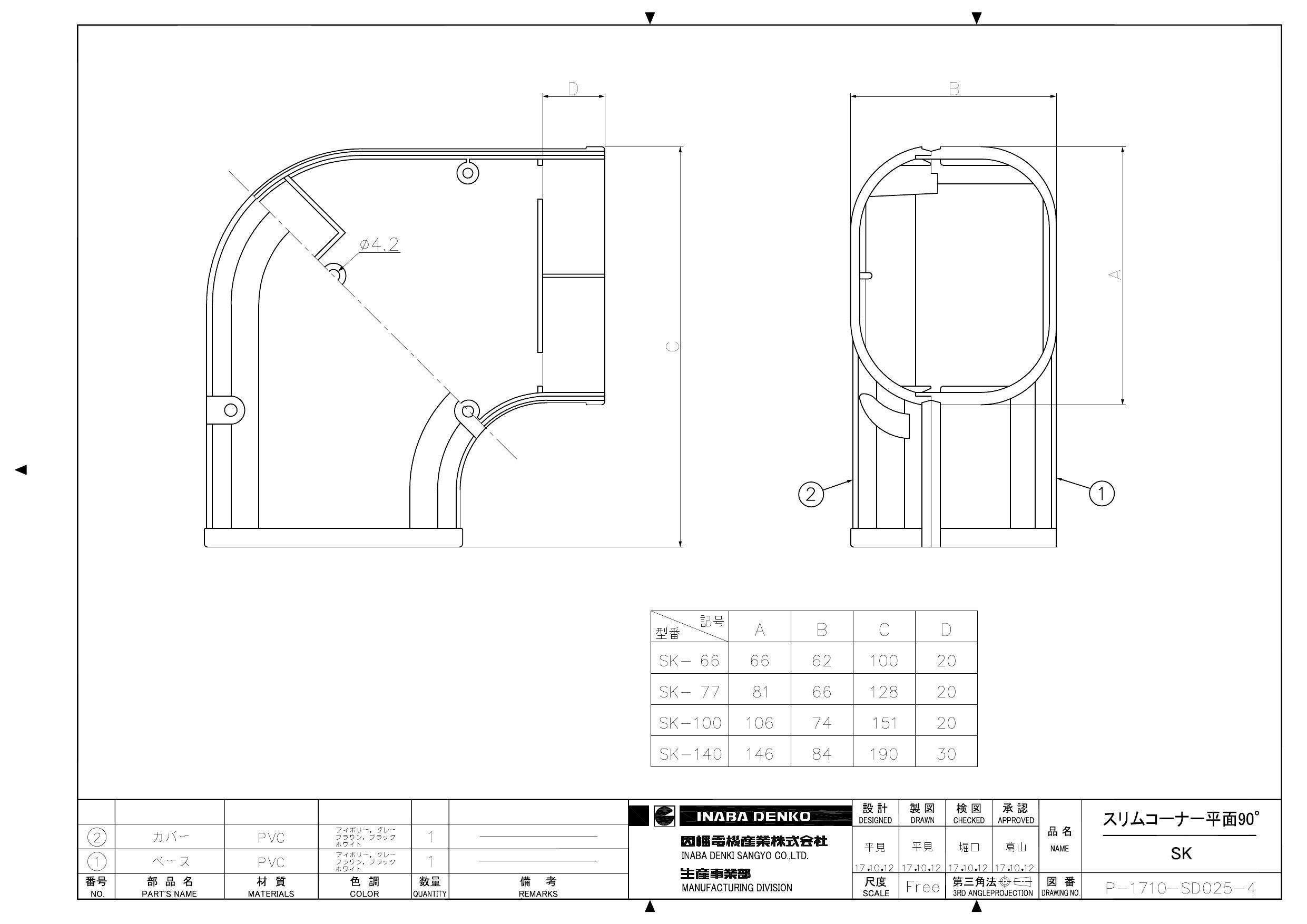 因幡電機産業 SK-77-I スリムコーナー 平面90° アイボリー 00000428674【別送品】