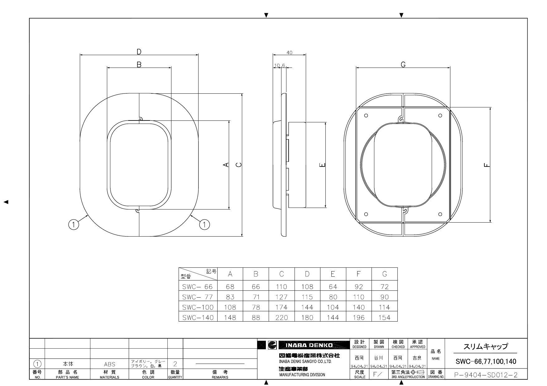 因幡電機産業 SWC-100-I スリムキャップ アイボリー 00000428770【別送品】