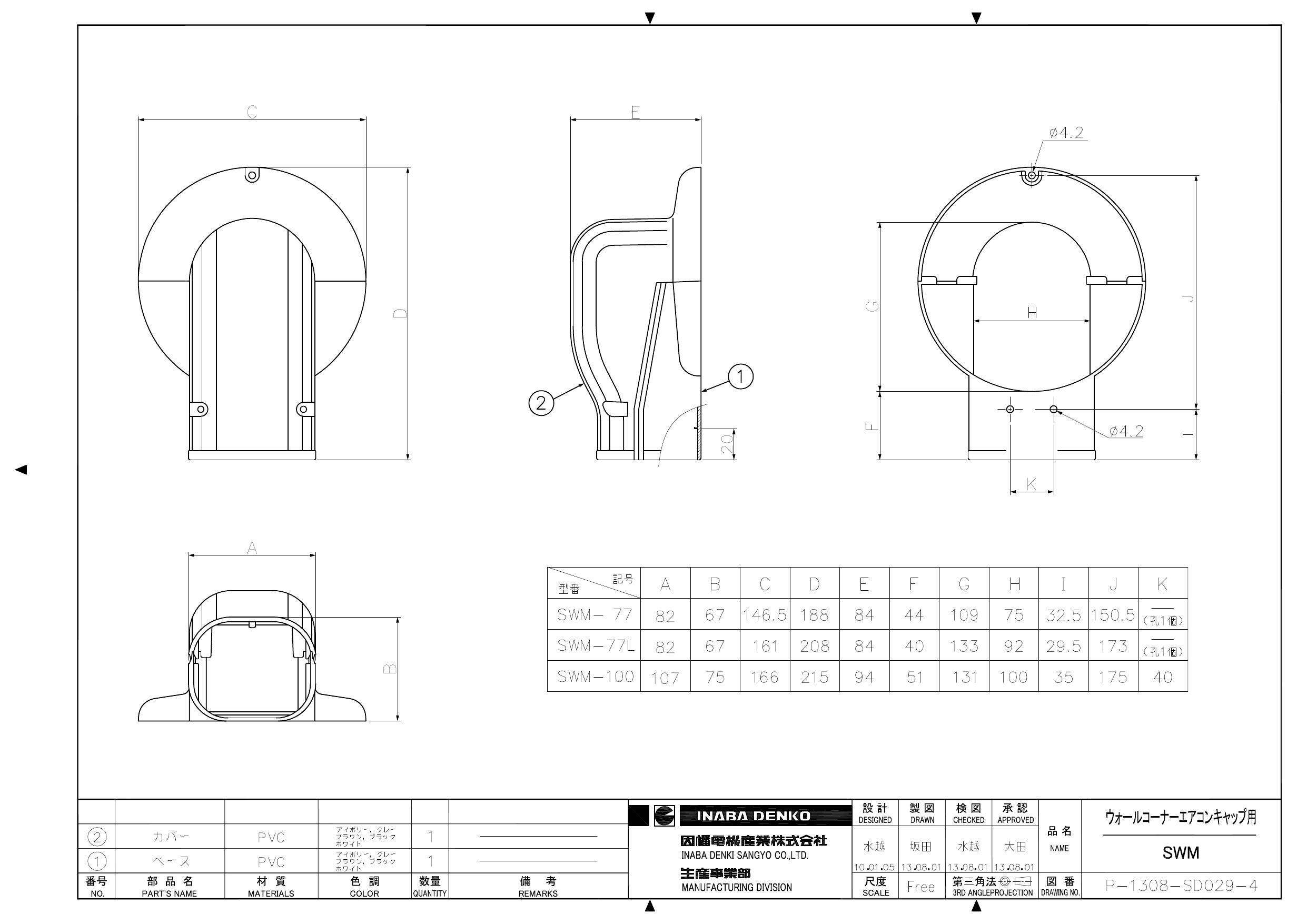 因幡電機産業 SWM-77-I ウォールコーナー エアコンキャップ用 アイボリー 00000428796【別送品】