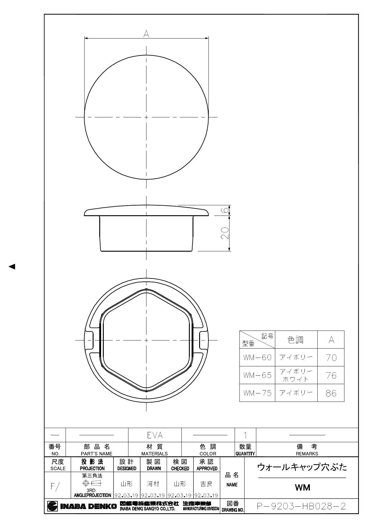 因幡電機産業 WM-65-I ウォールキャップ 穴ぶた アイボリー 00000438186【別送品】