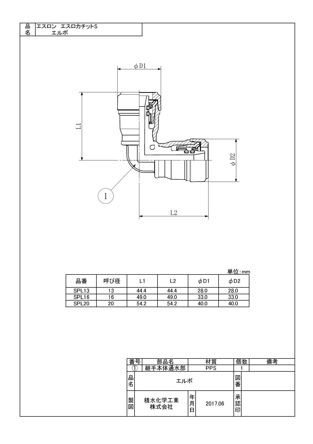 積水化学工業 セキスイ SPL エスロカチットS エルボ 樹脂製 16 配管部材 エスロカチットS 00000606928【別送品】