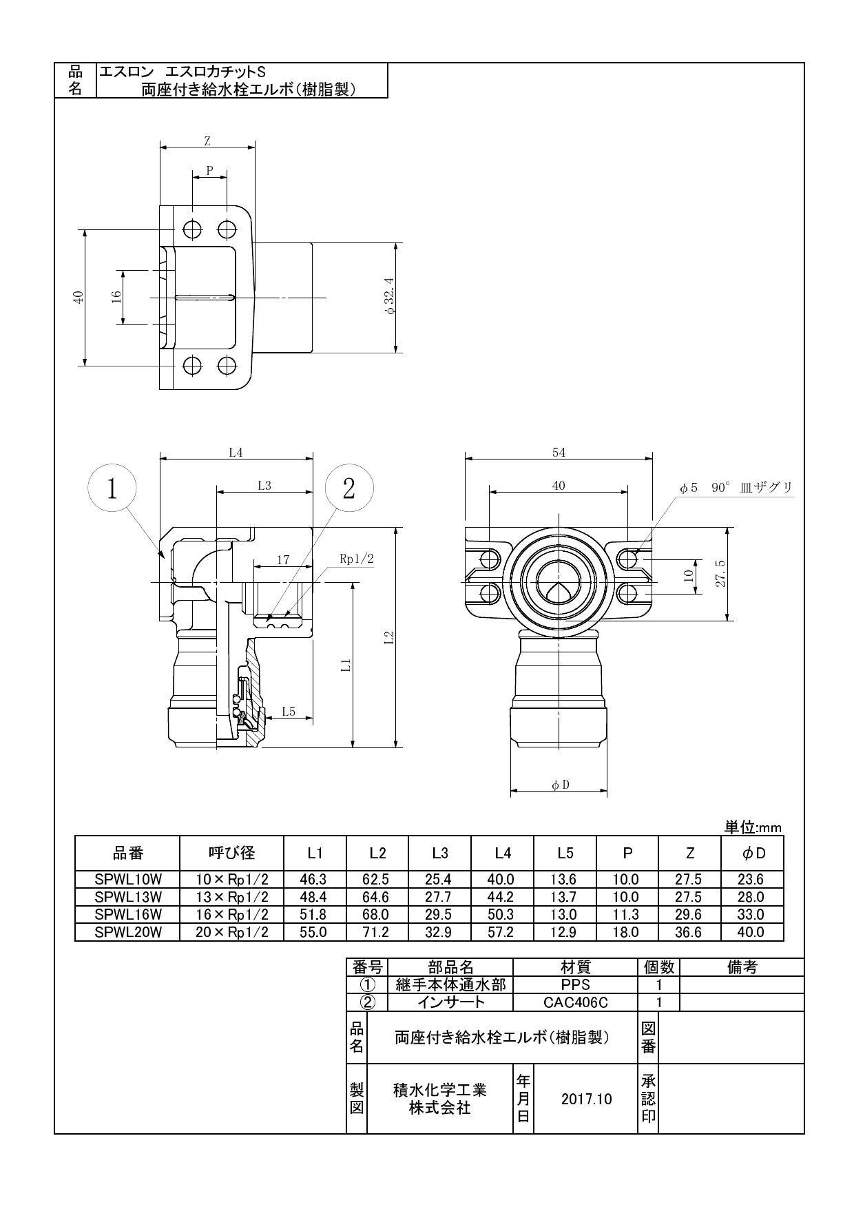 セキスイ 積水化学工業 SPWL-W 13XRP1/2 SPWL-W エスロカチットS 両座付き給水栓エルボ 樹脂製 13XRP1/2 配管部材 エスロカチットS 00000810170【別送品】