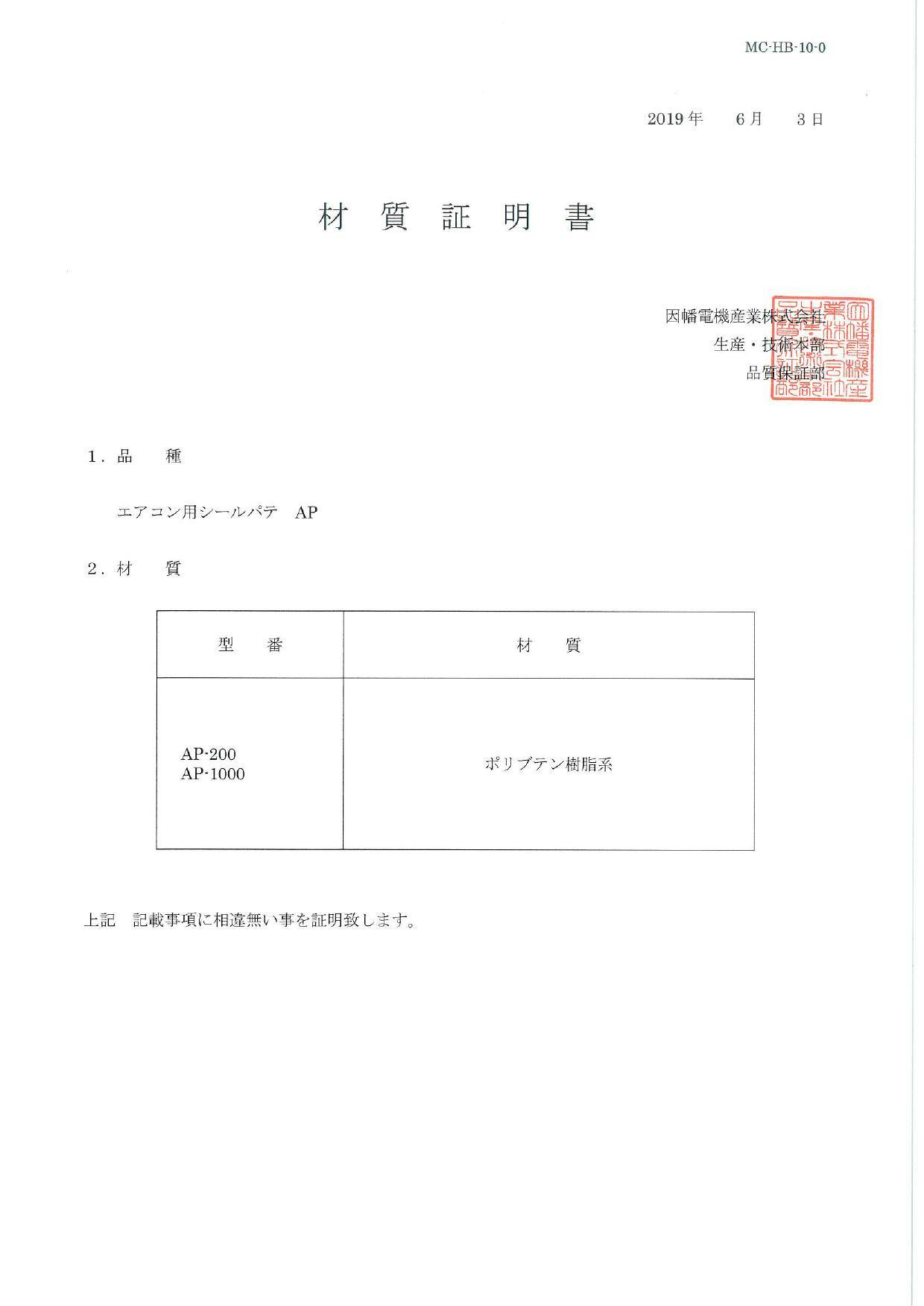 因幡電機産業 AP-1000 エアコン用シールパテ ホワイト 1000g 00000823612【別送品】
