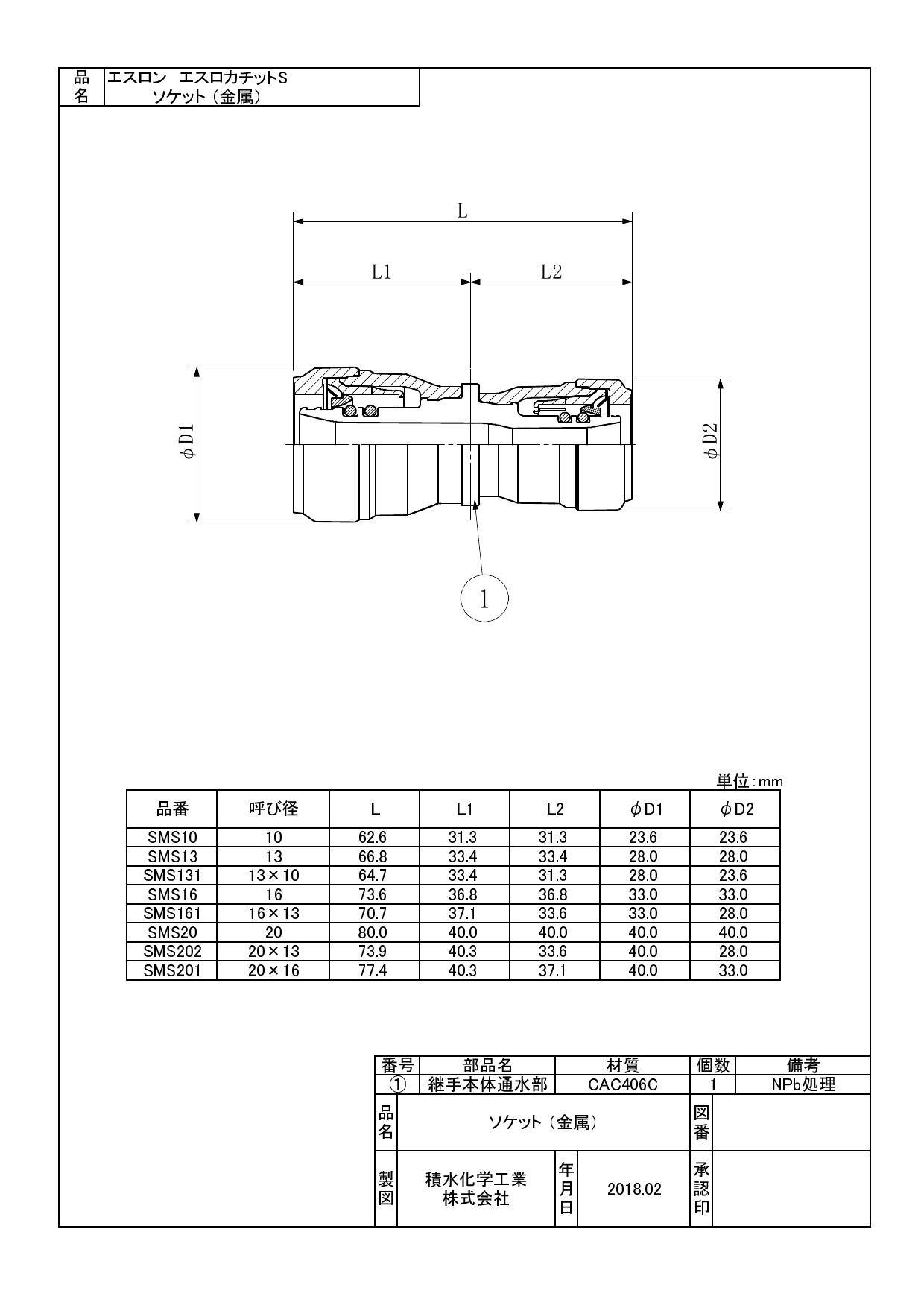 セキスイ 積水化学工業 SMS 13 SMS エスロカチットS ソケット 砲金製 13 配管部材 エスロカチットS 00000829968【別送品】