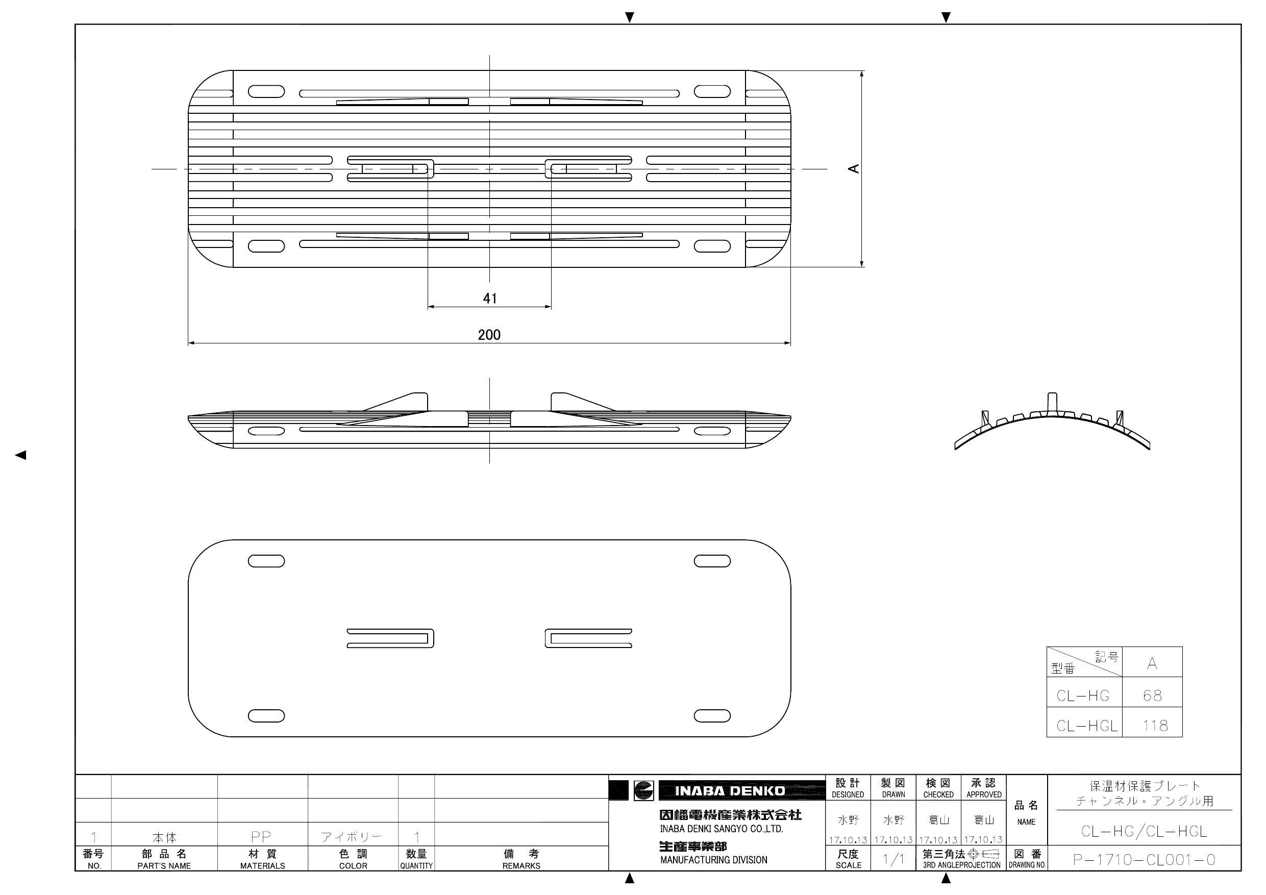 因幡電機産業 CL-HGL 保温材保護プレート チャンネル・アングル用 ラージ アイボリー 00000844435【別送品】