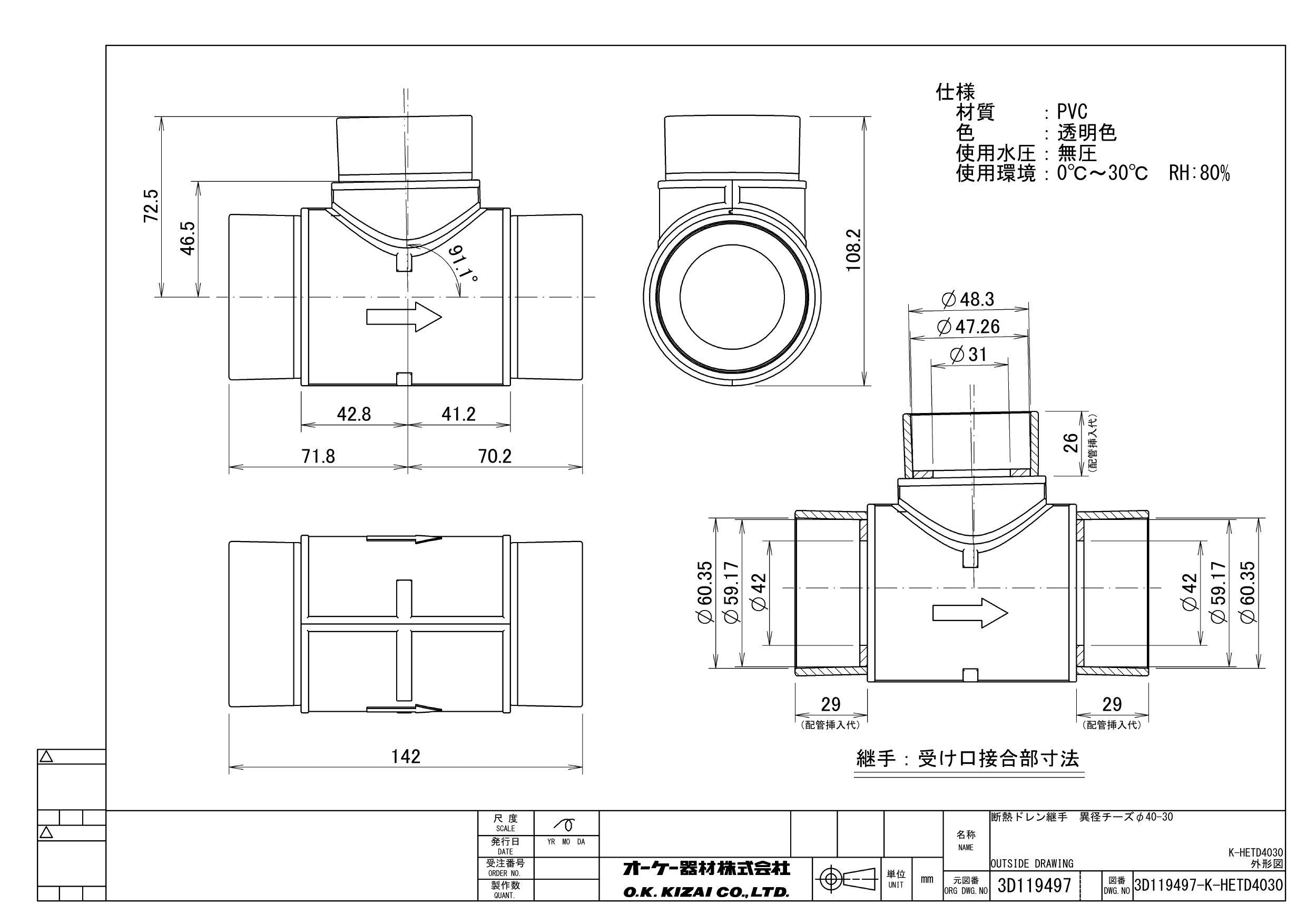 オーケー器材 K-HETD 40X30 K-HETD 断熱ドレン継手 チーズ 40X30 空調部材 断熱ドレン 結露防止層付 00000849478【別送品】