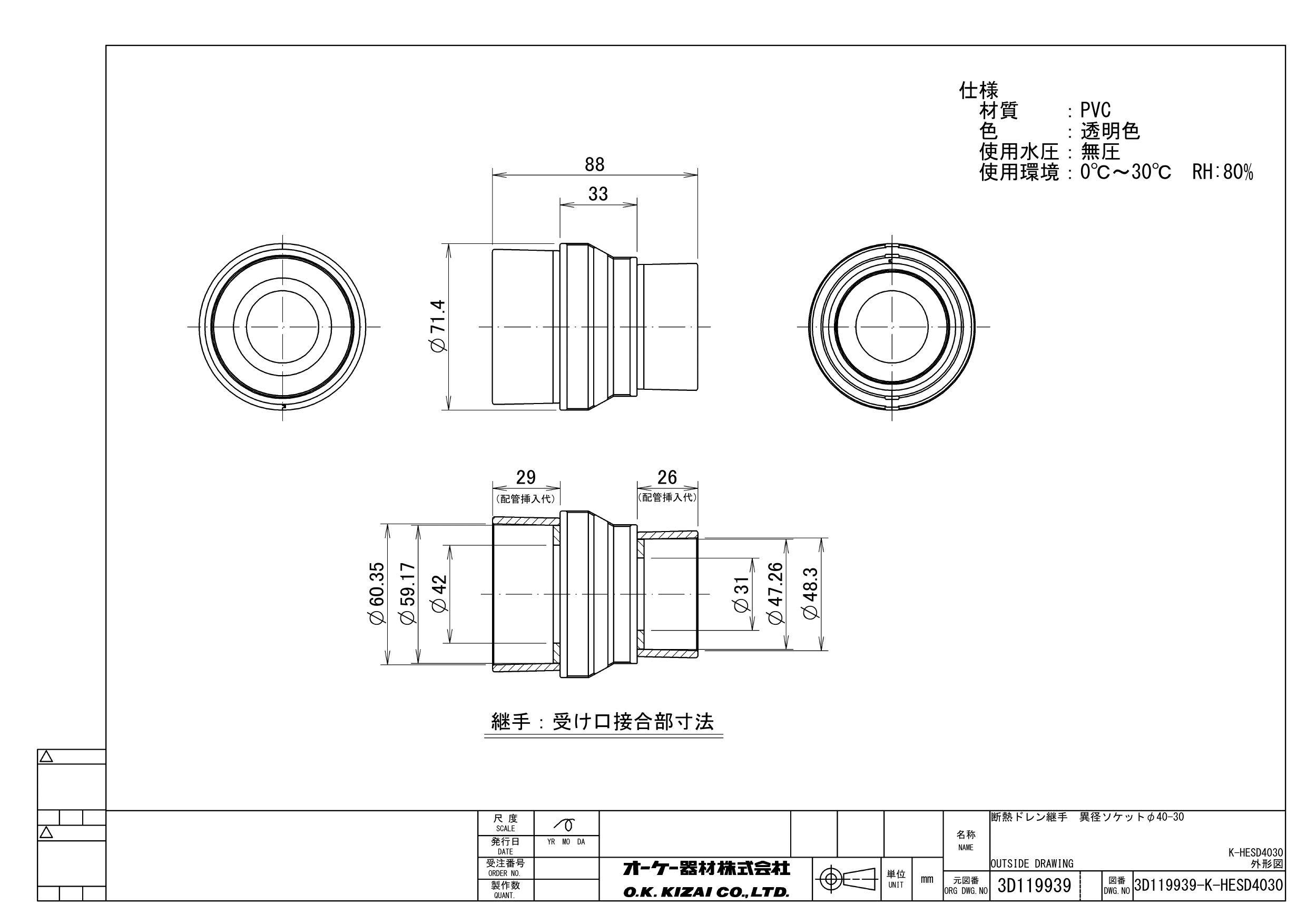オーケー器材 K-HESD 40X30 K-HESD 断熱ドレン継手 ソケット 40X30 空調部材 断熱ドレン 結露防止層付 00000849493【別送品】