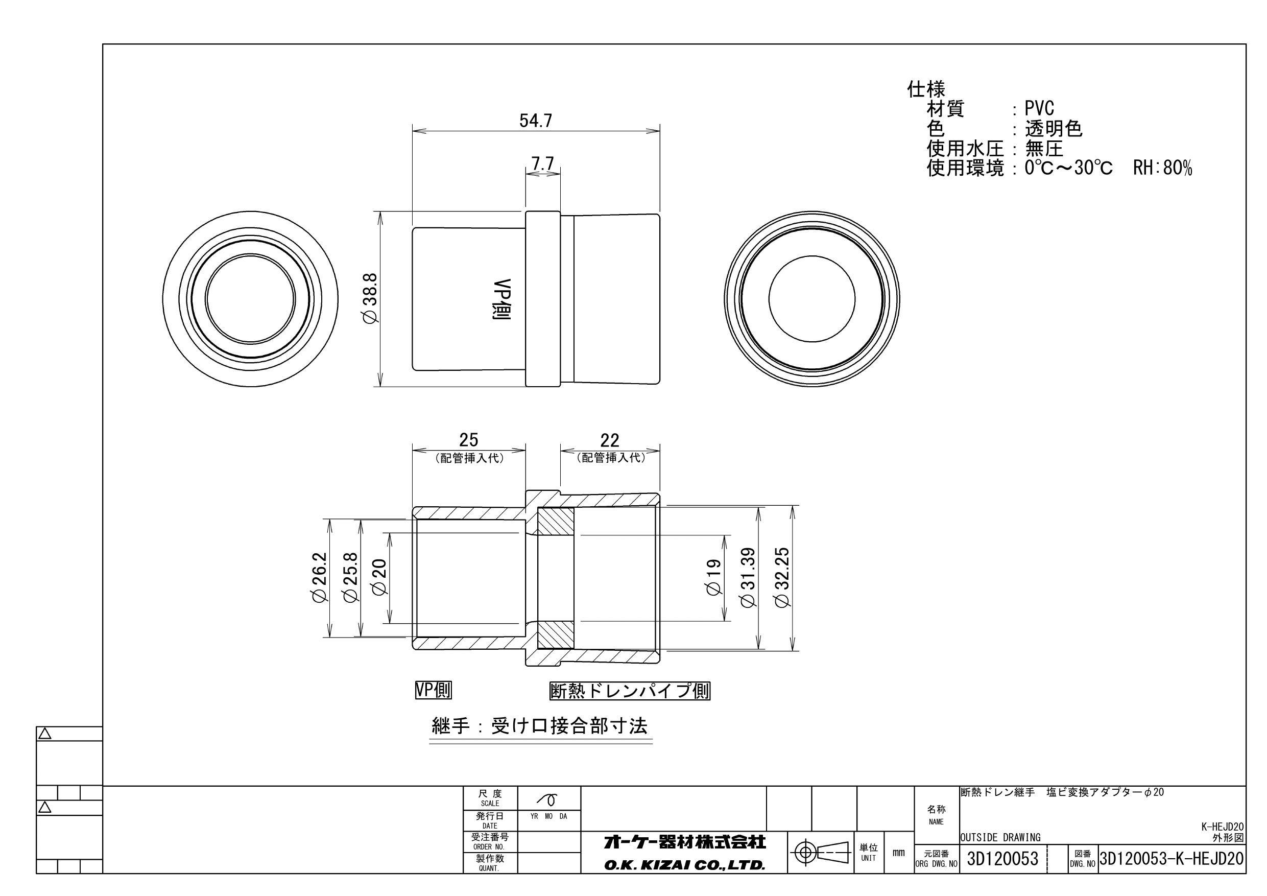 オーケー器材 K-HEJD 20 K-HEJD 断熱ドレン継手 塩ビ変換アダプター 20 空調部材 断熱ドレン 結露防止層付 00000849495【別送品】