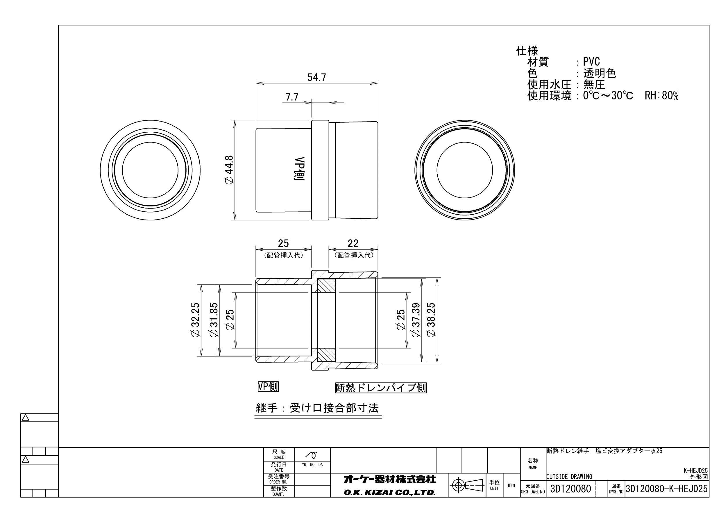 オーケー器材 K-HEJD 25 K-HEJD 断熱ドレン継手 塩ビ変換アダプター 25 空調部材 断熱ドレン 結露防止層付 00000849496【別送品】