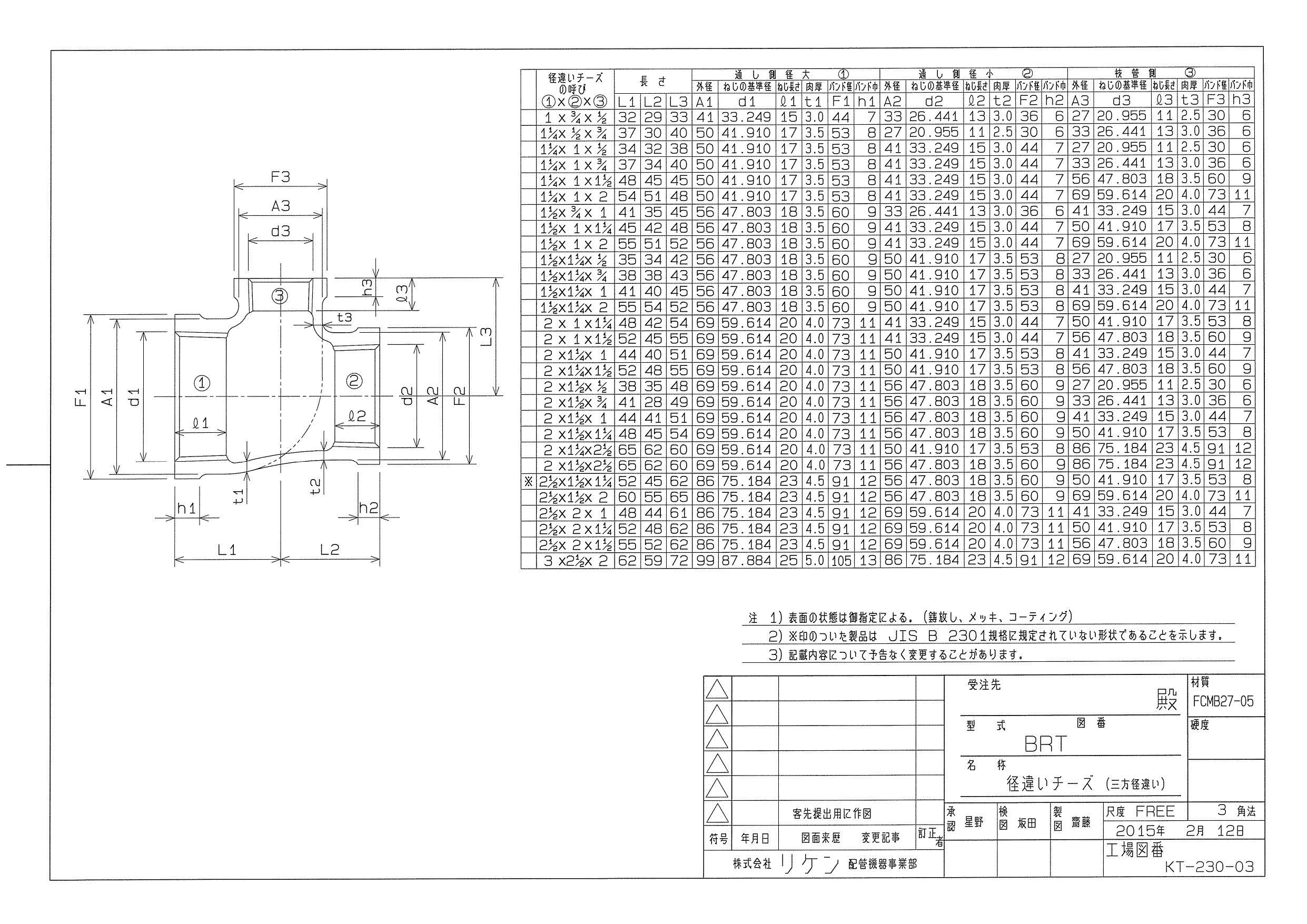 リケン 白 異径チーズ バンド付 50AX32A 配管部材 三方異径・クロス・バンド付 ねじ込み継手 00000877783【別送品】