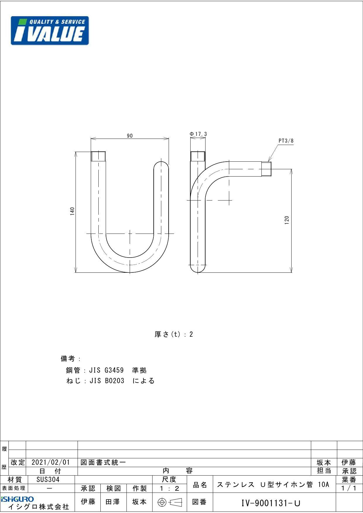 IVALUE SUS304 ネジ込み Uサイホンパイプ 10A 配管部材 サイホン管 00001129805【別送品】