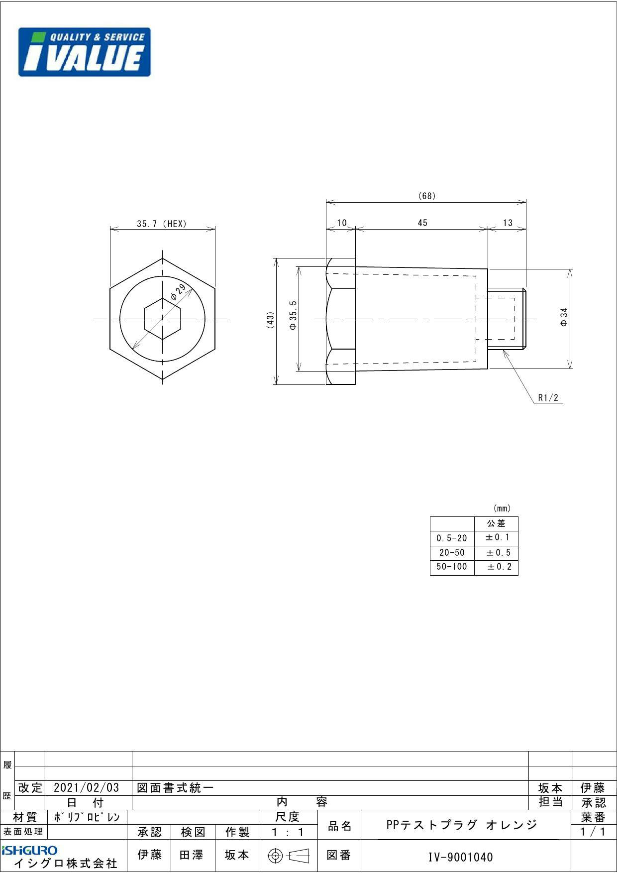 • IVALUE PPテストプラグ オレンジ 15A 配管部材 テストプラグ 00001133530【別送品】
