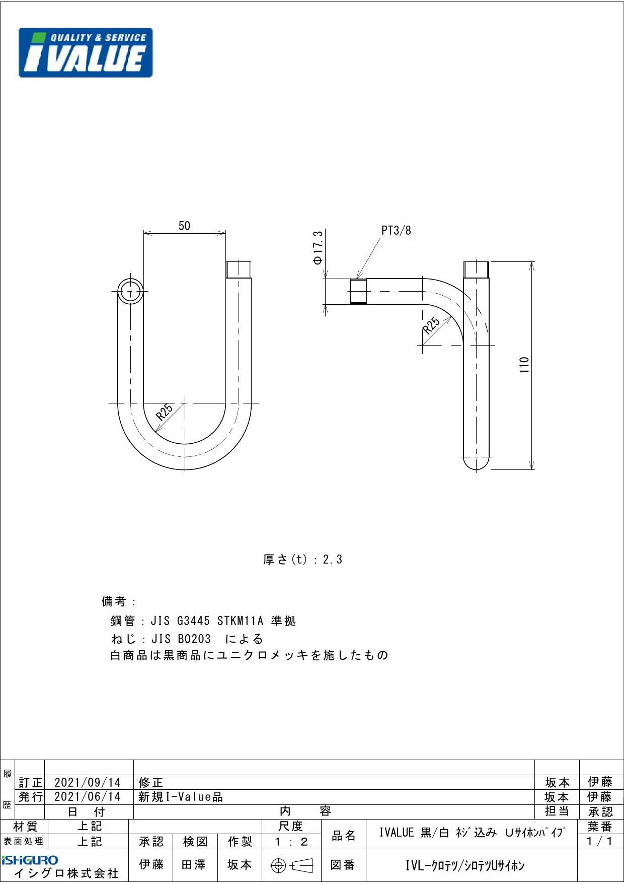 IVALUE 白鉄 ネジ込み Uサイホンパイプ 10A 配管部材 サイホン管 00001171185【別送品】