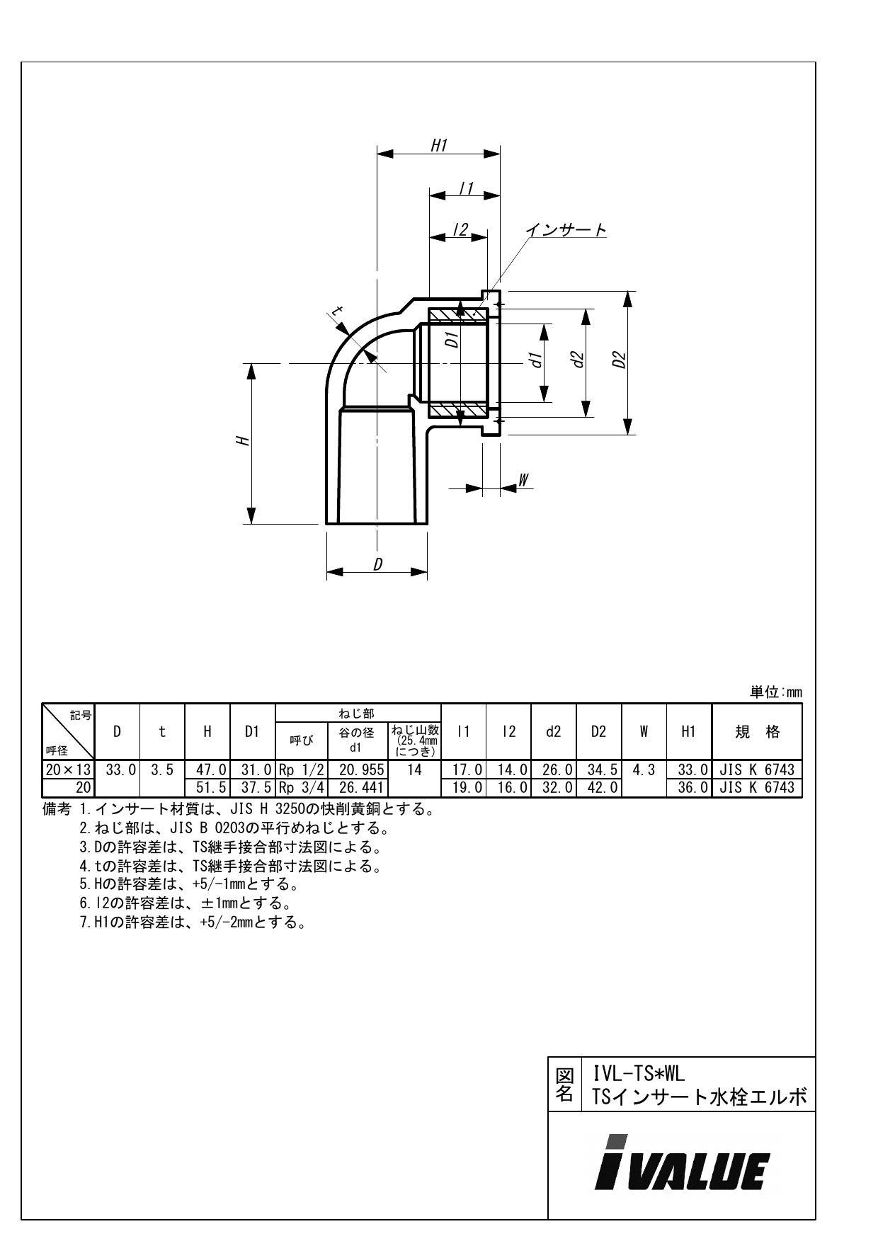 IVALUE IVL-TS-WL TSインサート 水栓エルボ 25 配管部材 PVC-TS樹脂インサート継手 00001184098【別送品】