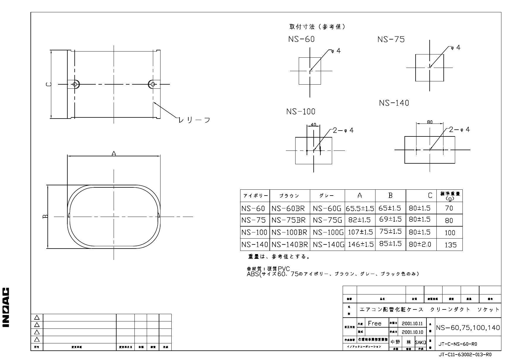 • イノアック住環境 NS-60 ソケット 60 副資材 エアコン配管用化粧ケース 00001240237【別送品】