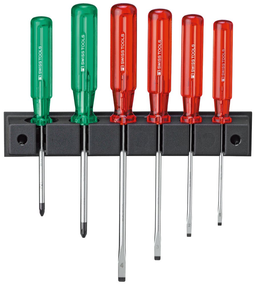 ピービースイスツールズ 6本組 クラシックハンドル マイナス・ポジドライバーセット ホルダー付 1mm 245 マイナスドライバー ドライバーセット 高トルク 501126014【別送品】